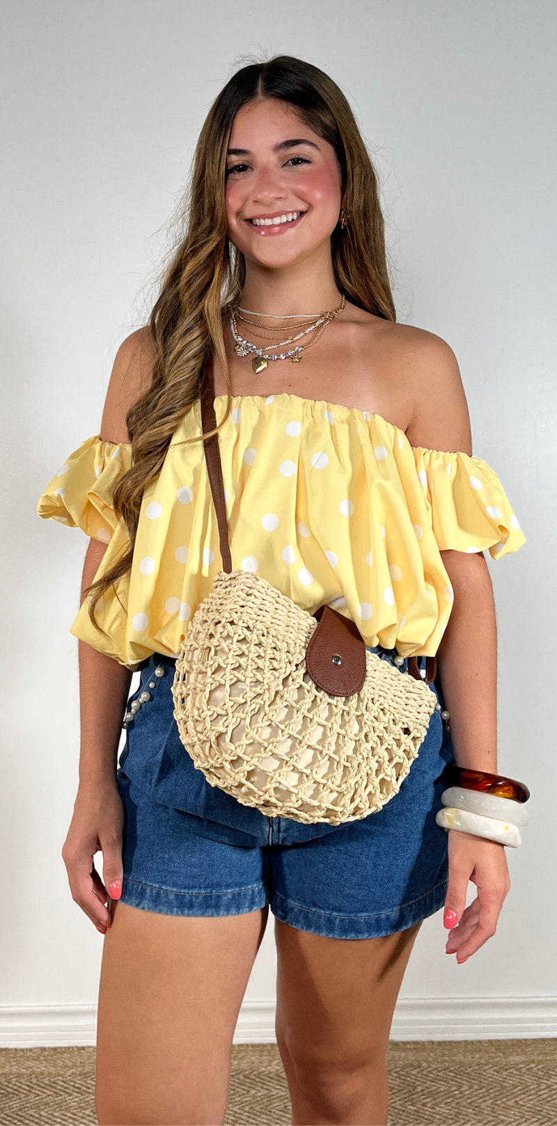 Yellow Polka Dot Bardot Top