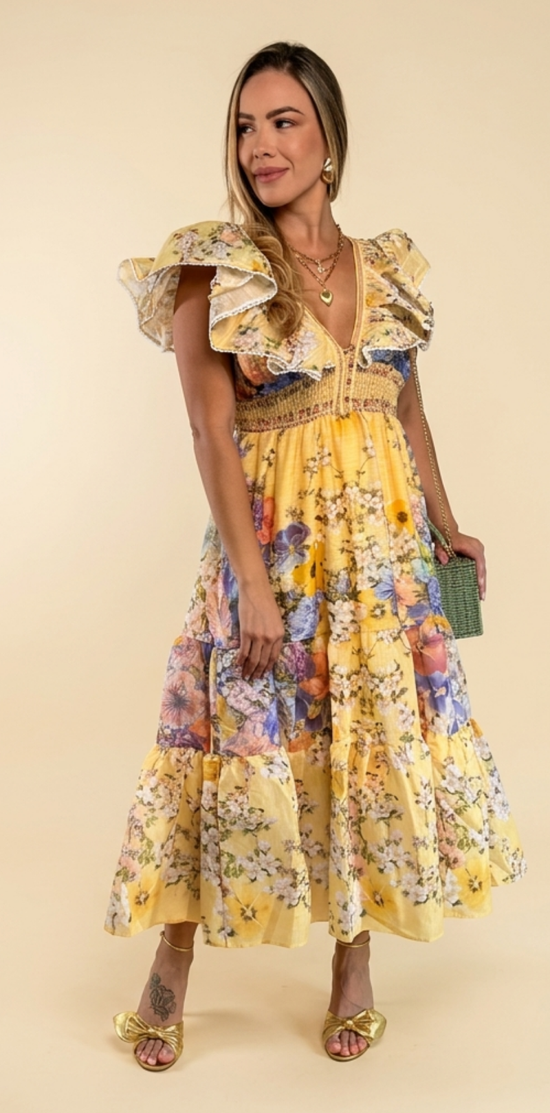 Flutter Sleeves Floral Maxi Dress