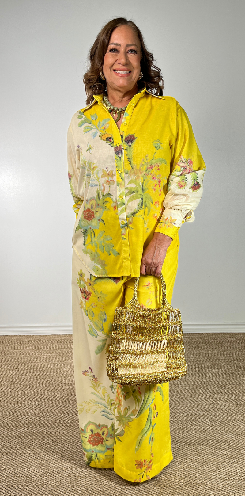 Yellow Botanical Linen Blouse