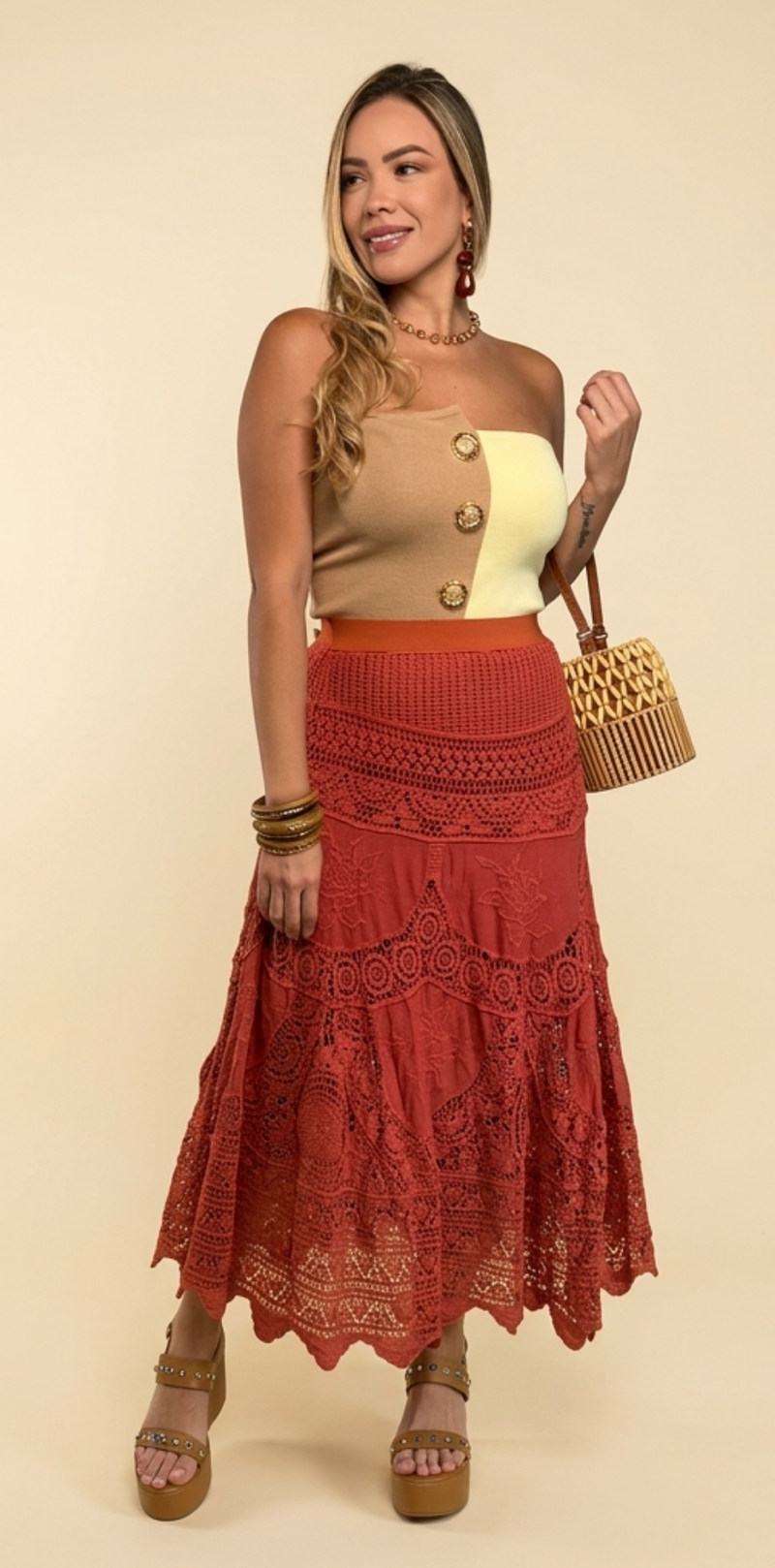 Tiered Crochet Lace Maxi Skirt