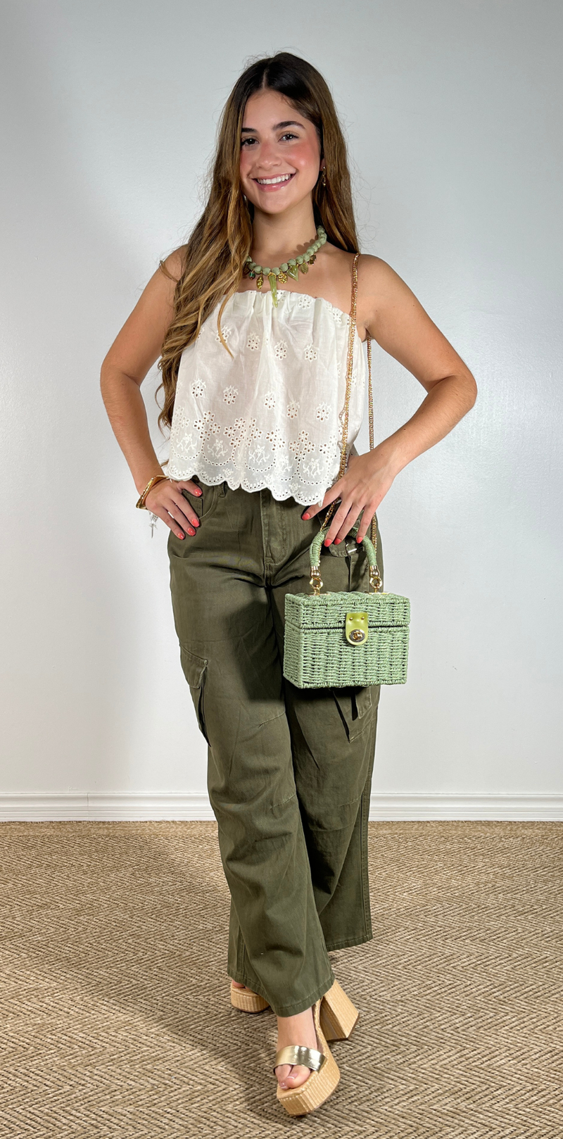 Olive Green Wide-Leg Cargo Pants
