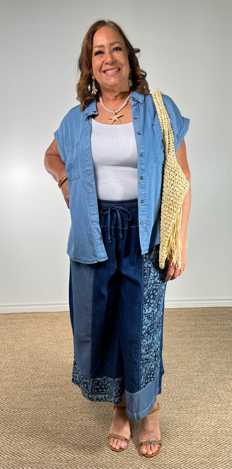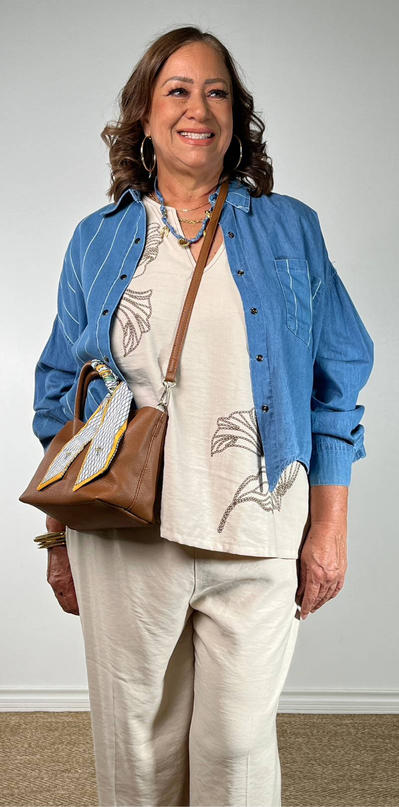 Eyelet Hem Denim Top