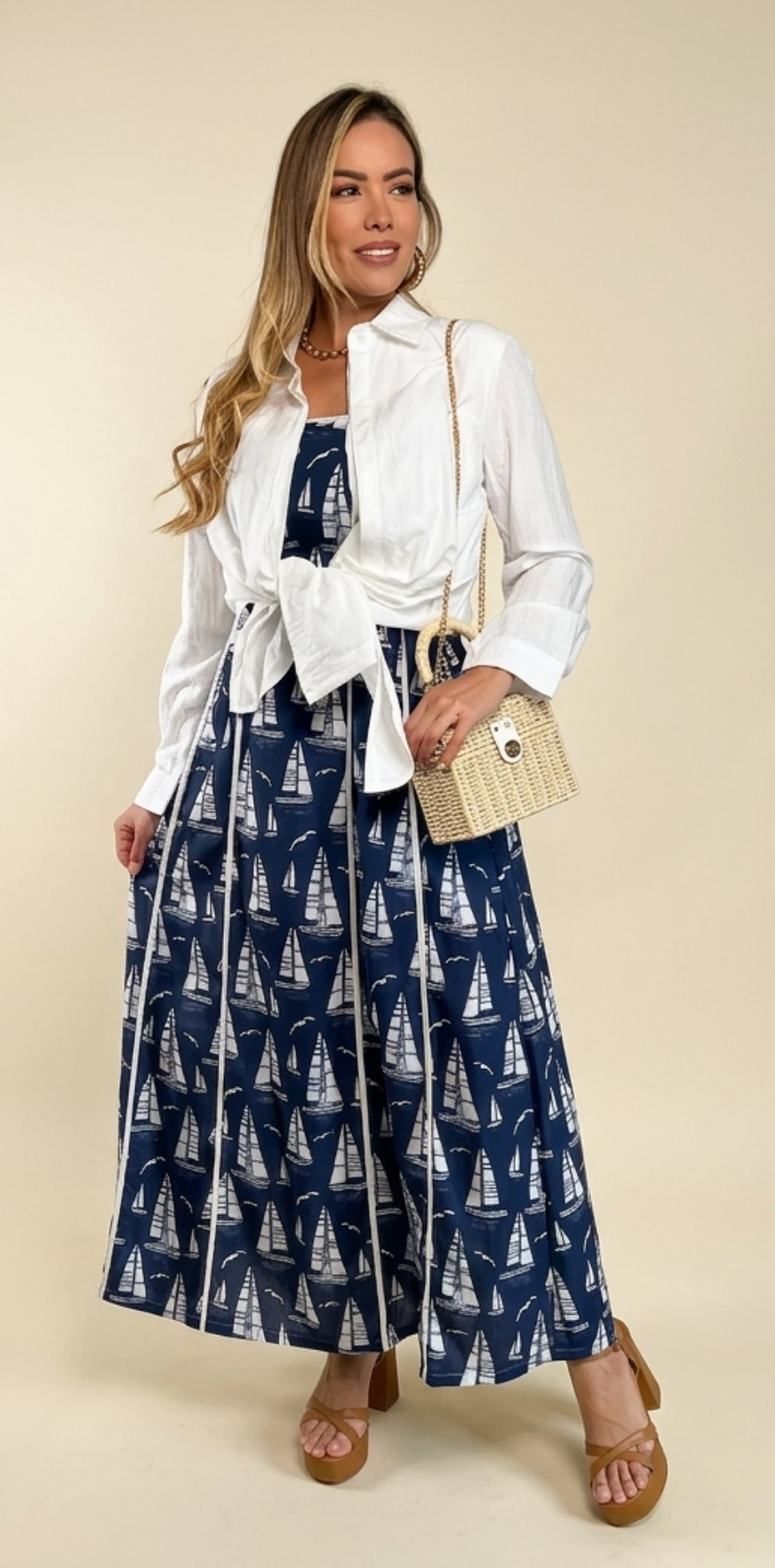 Sailboat Print Navy Maxi Dress