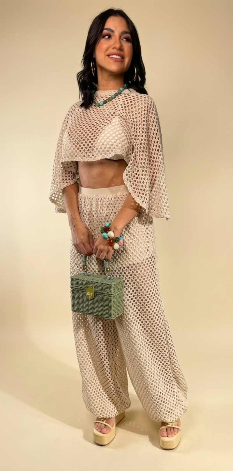 Beige Open-Knit Crop Top