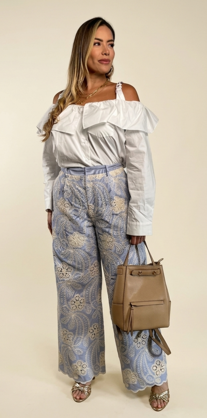 White Buttoned-Down Shirt with Gold Detail