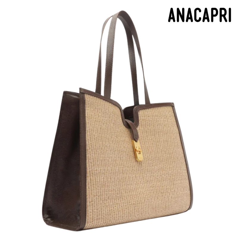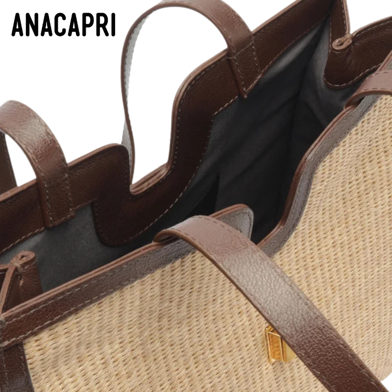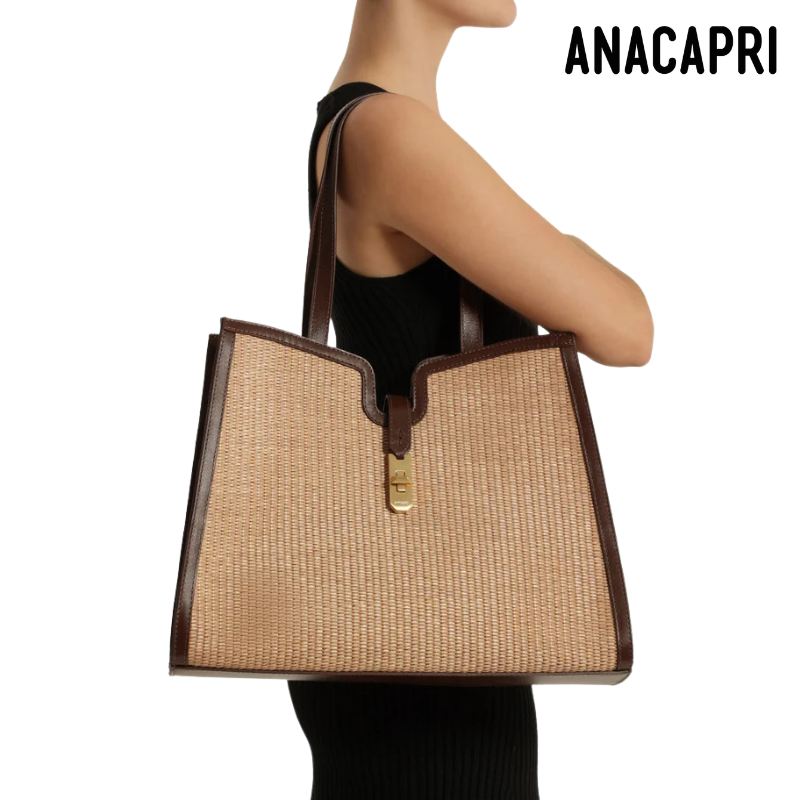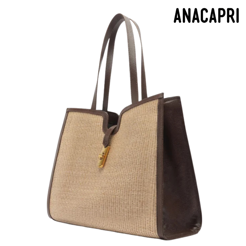 Brown Details Natural Handbag.