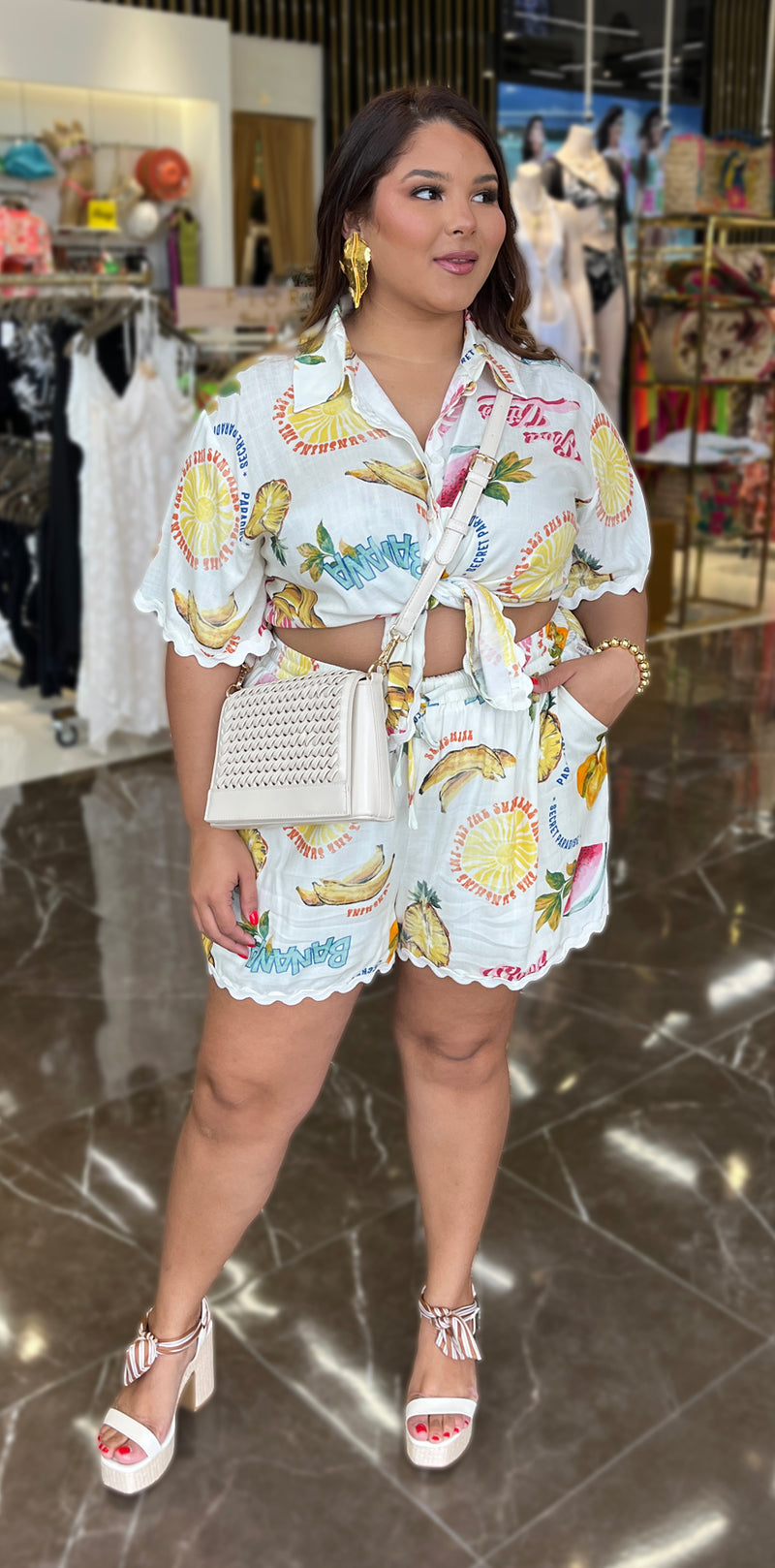 Fruits Print White Shorts