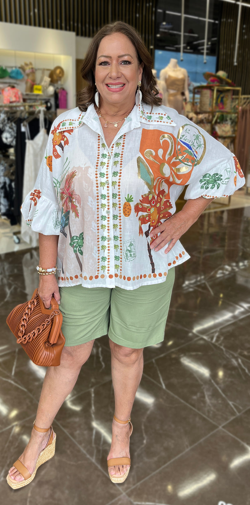 Tropical Print White Blouse