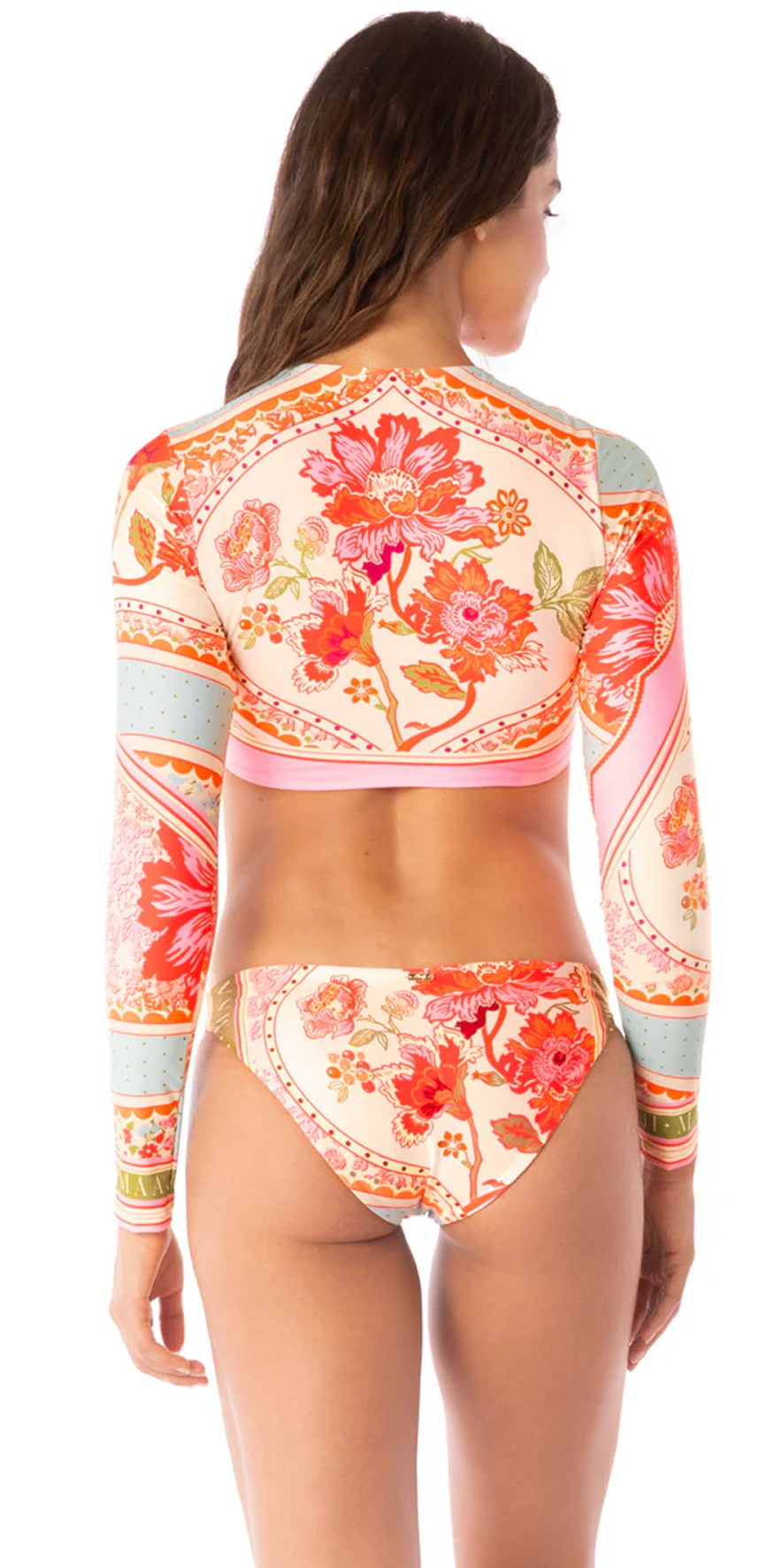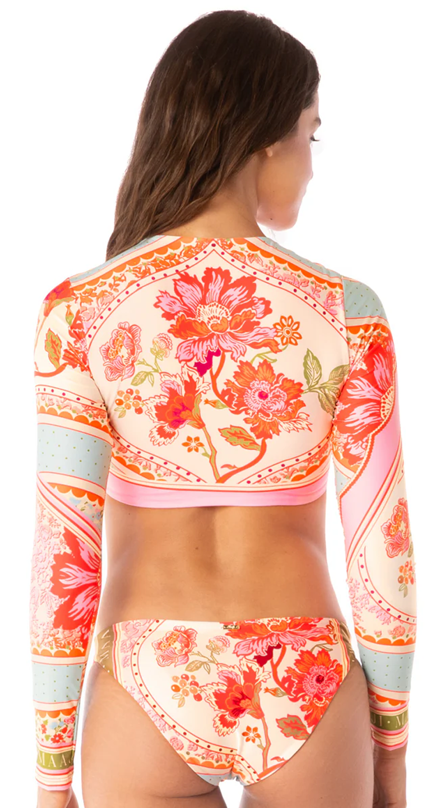 Floral Long Sleeves Creme Bikini Top.