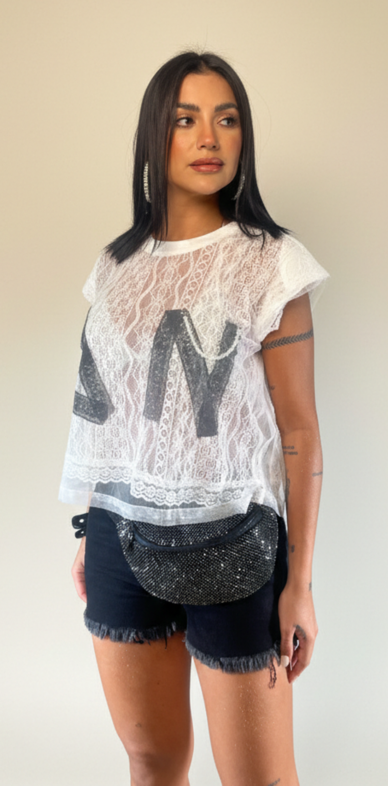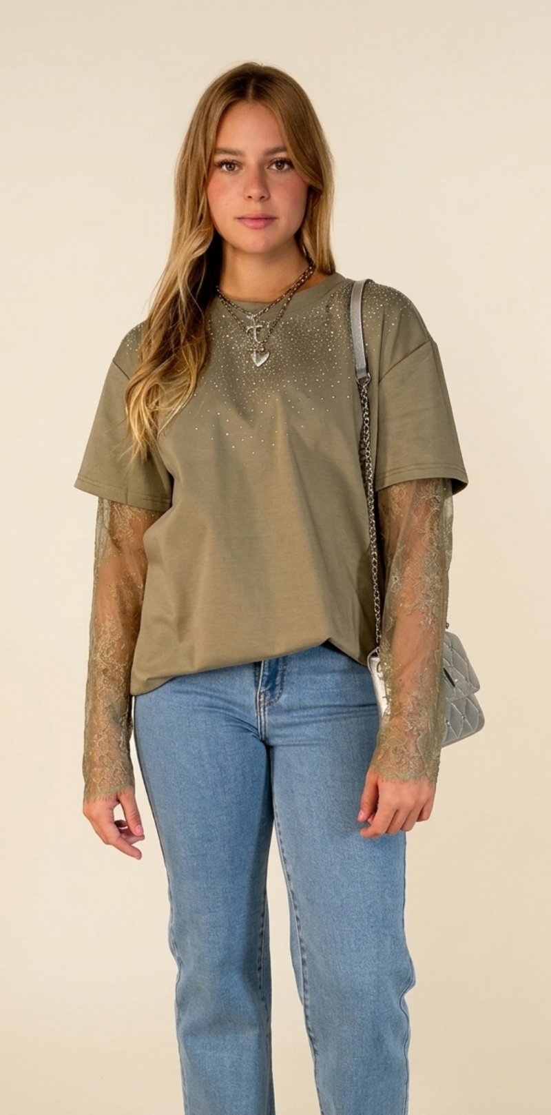 Embellished Lace Sleeve Shirt