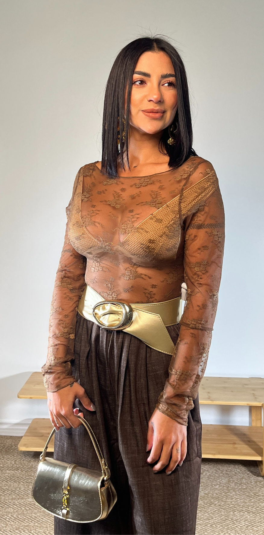 Lace floral sheer top. Price: AWG 75,- / USD 43