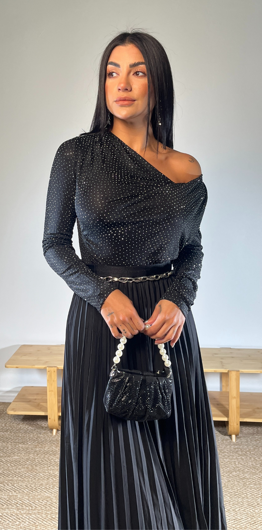 Black Studded Long Sleeve Blouse
