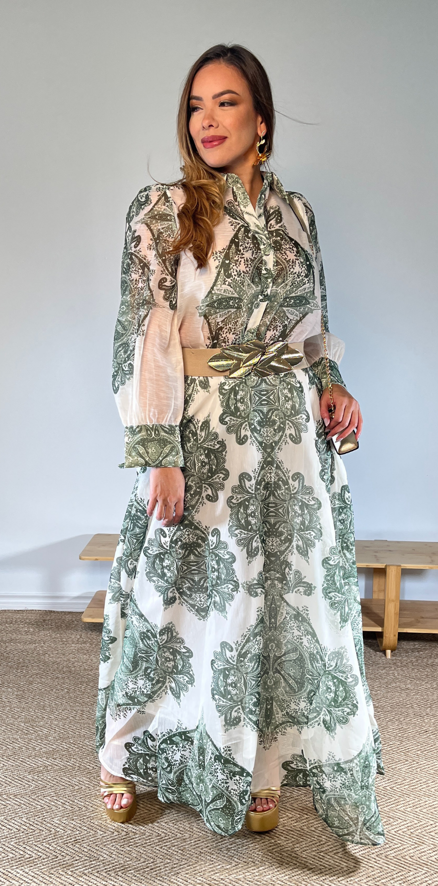 Green Print Linen Blouse