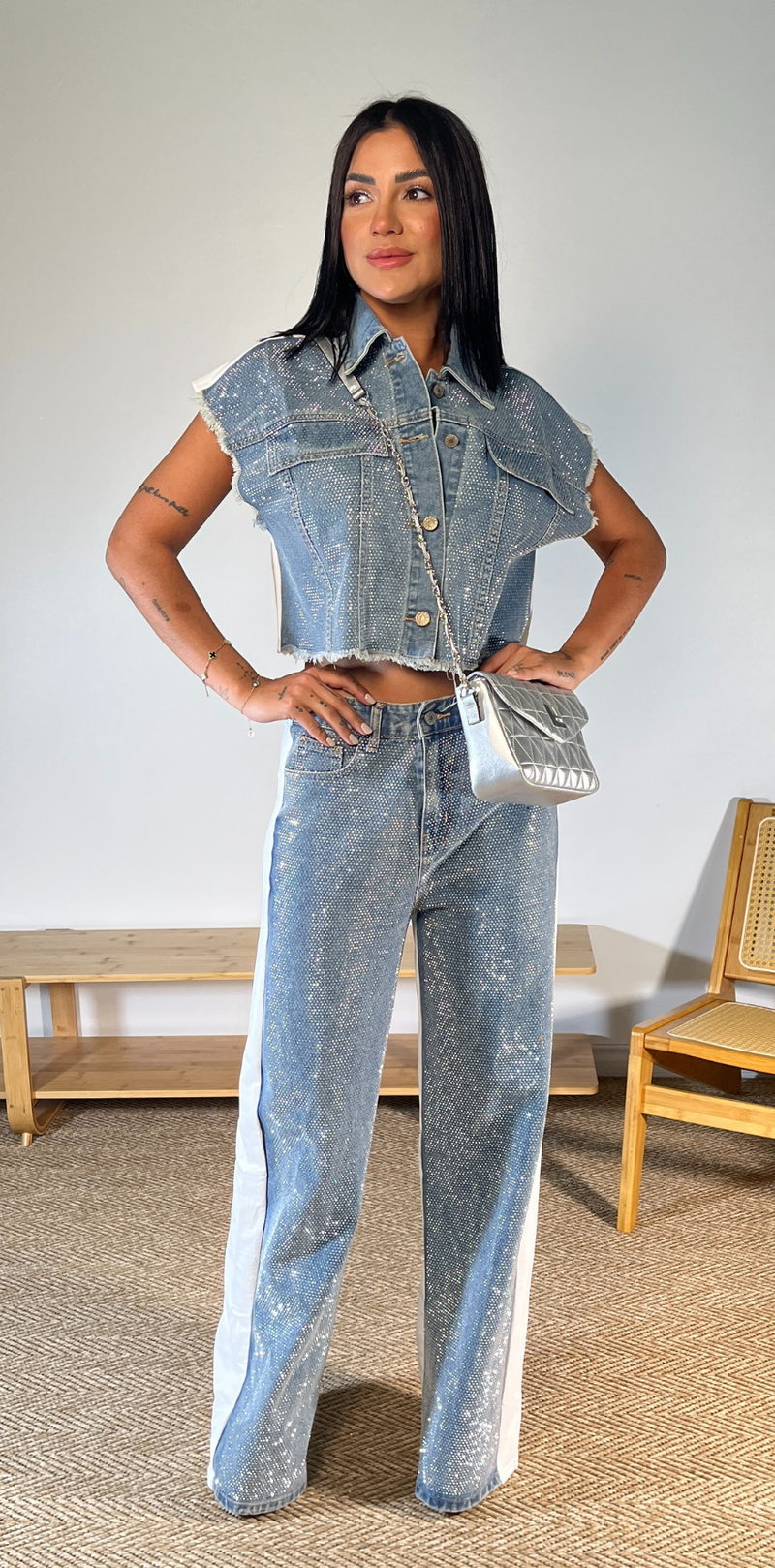 Denim Blue Studded Top