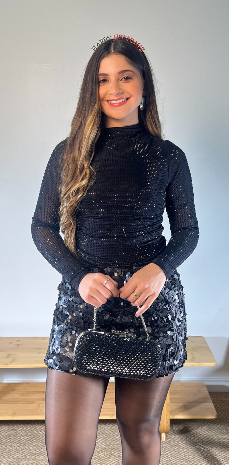 Black Sequin Crop Top