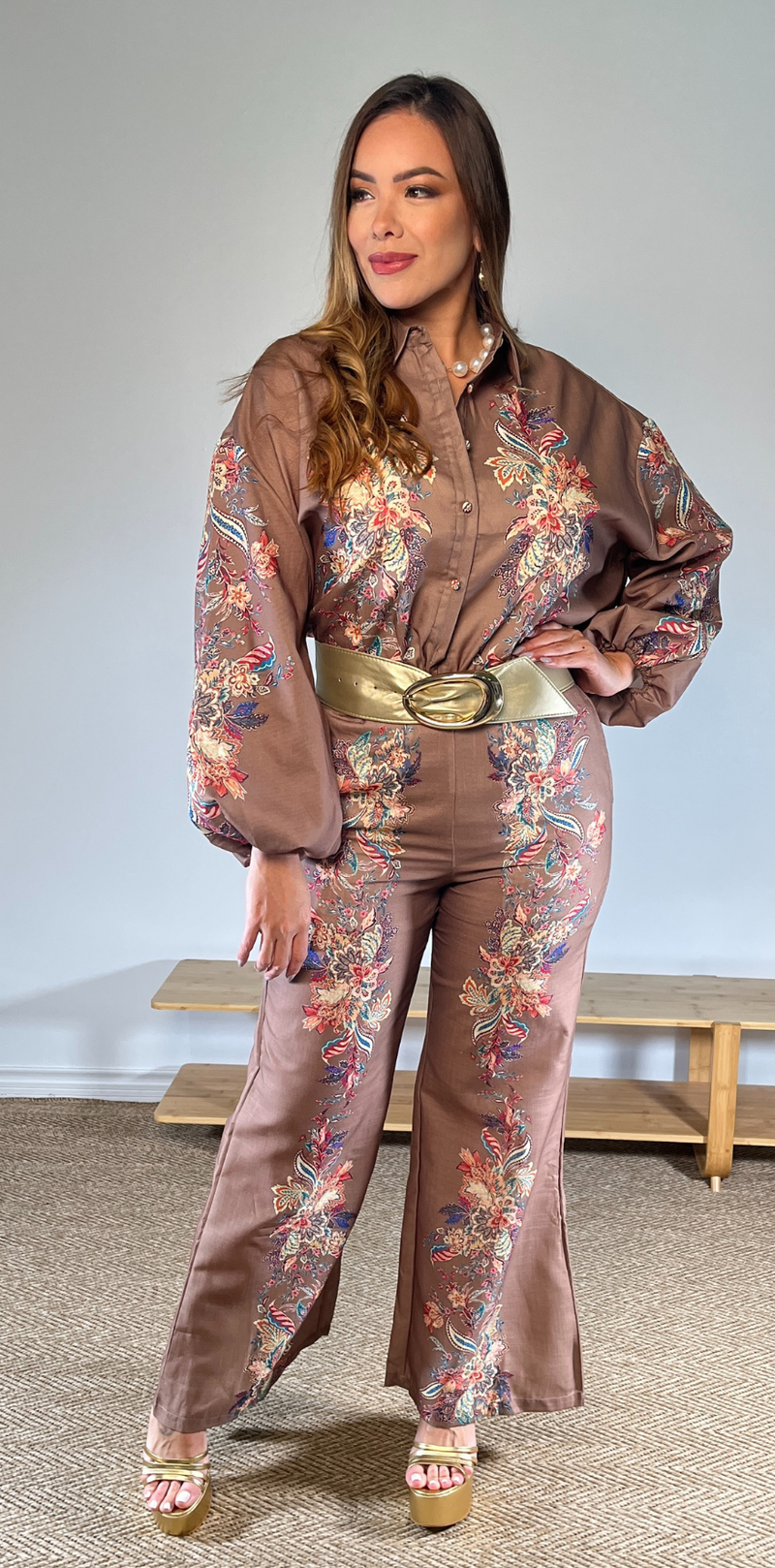 Floral Print Mocha Blouse