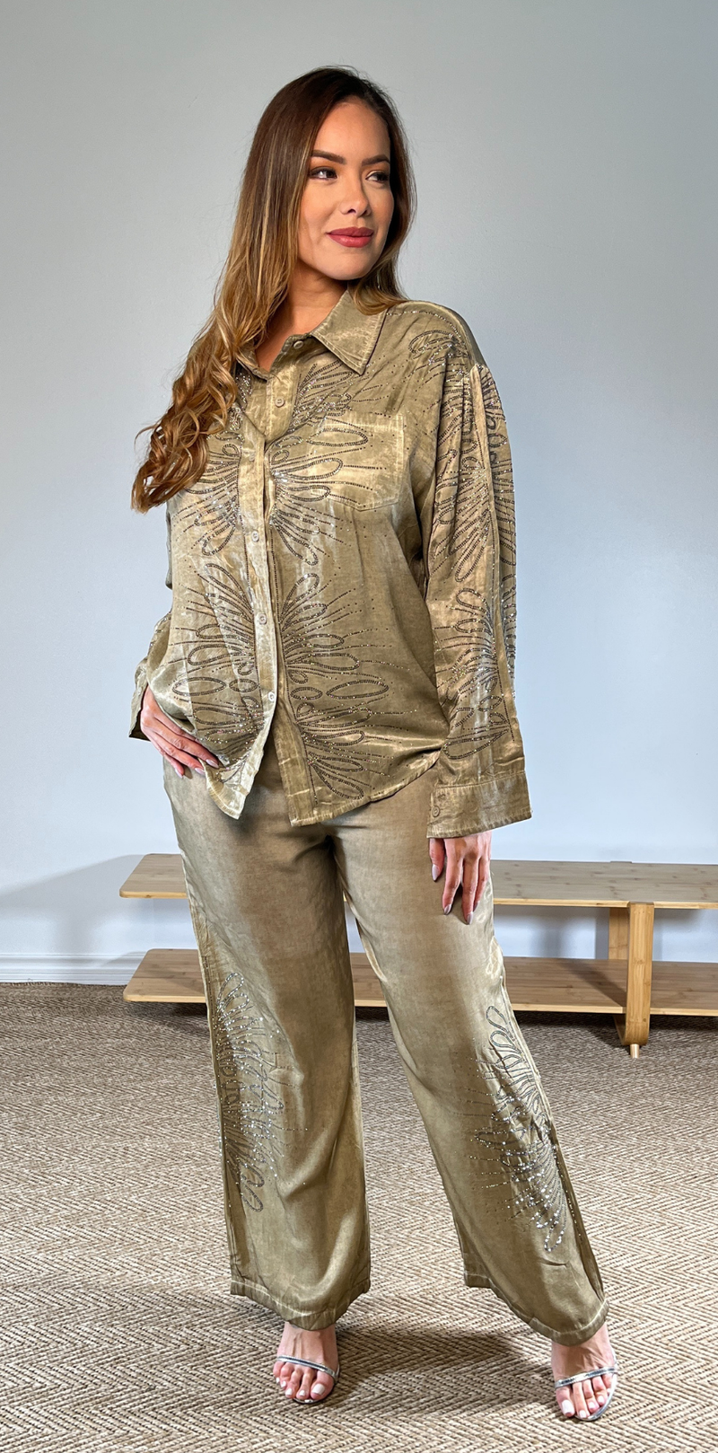 Taupe Beaded Blouse