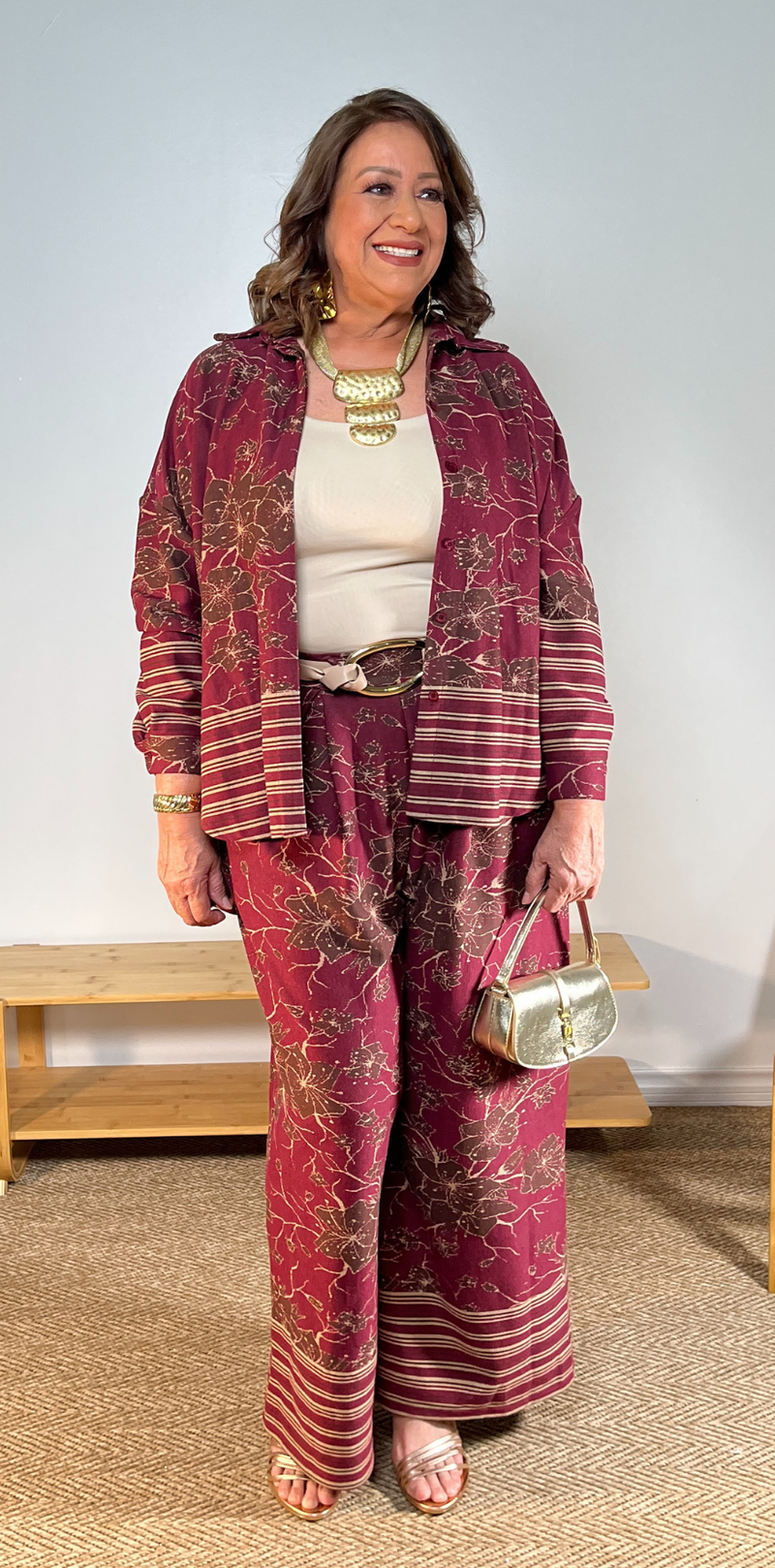 Floral Print Burgundy Pants