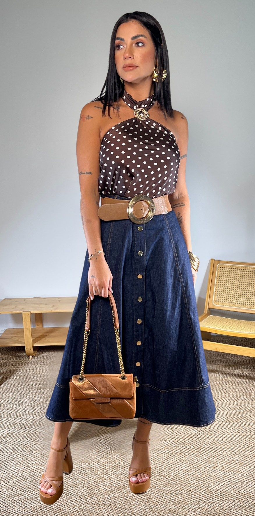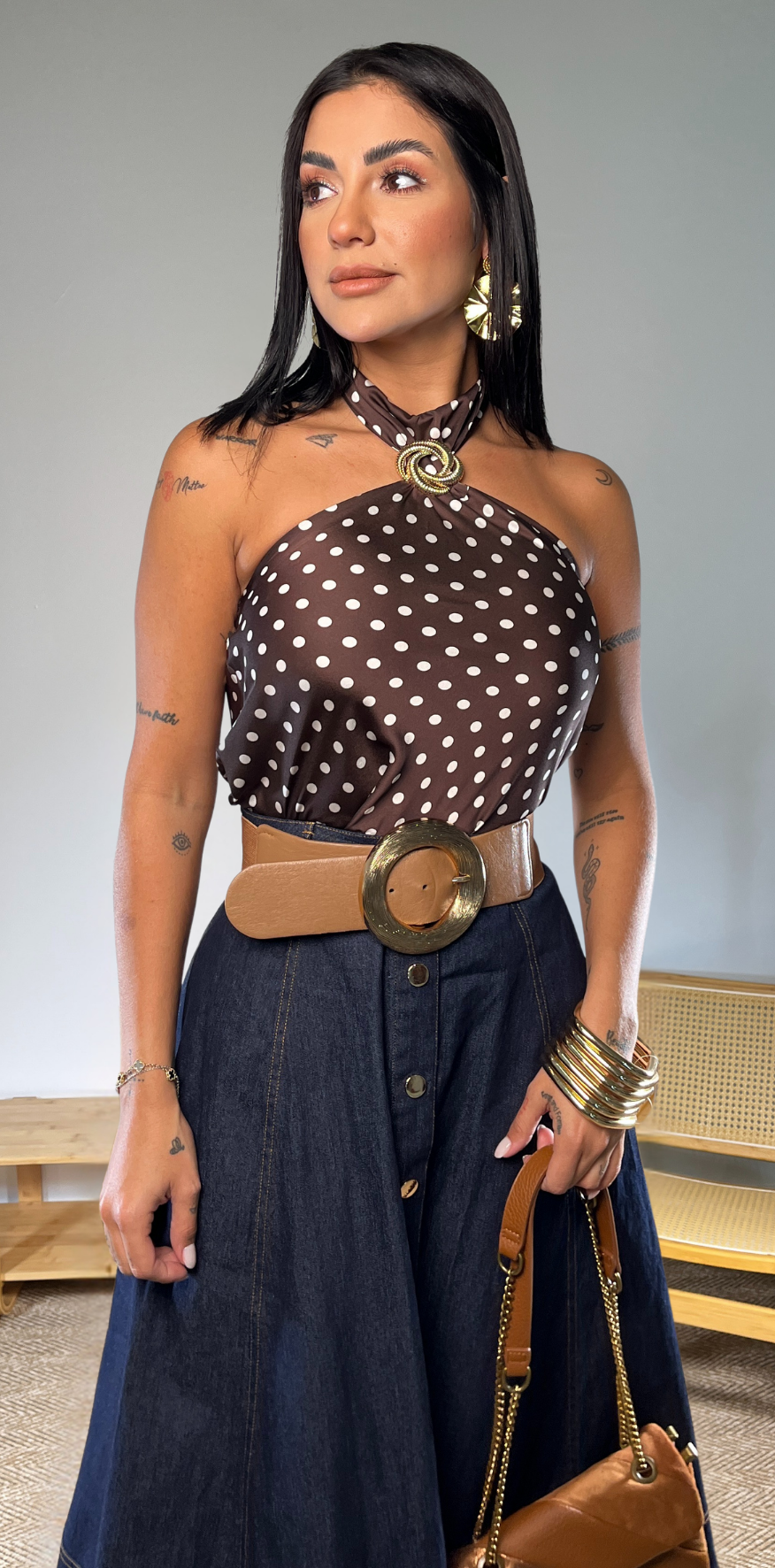 Brown Polka Dots Blouse.