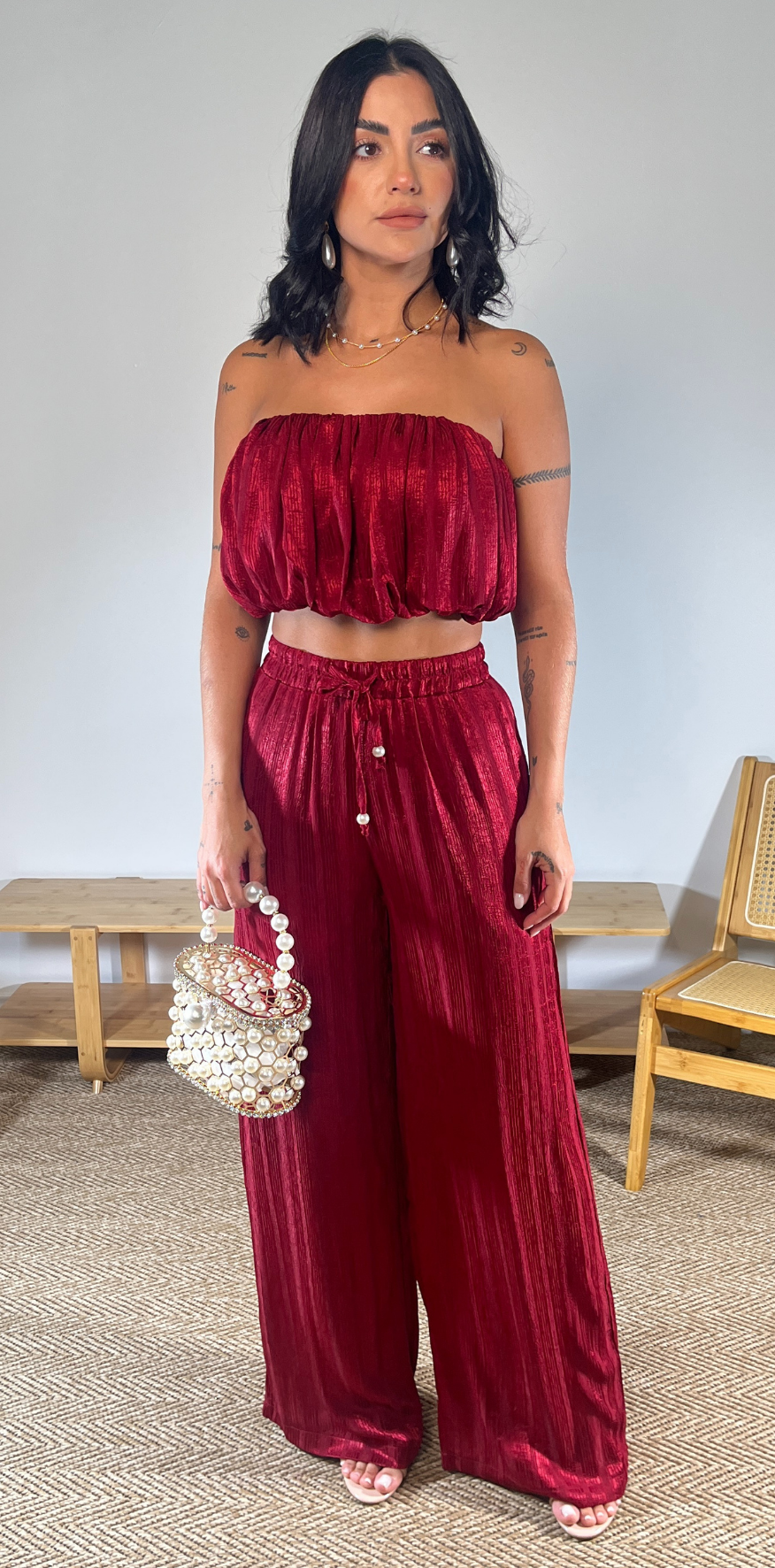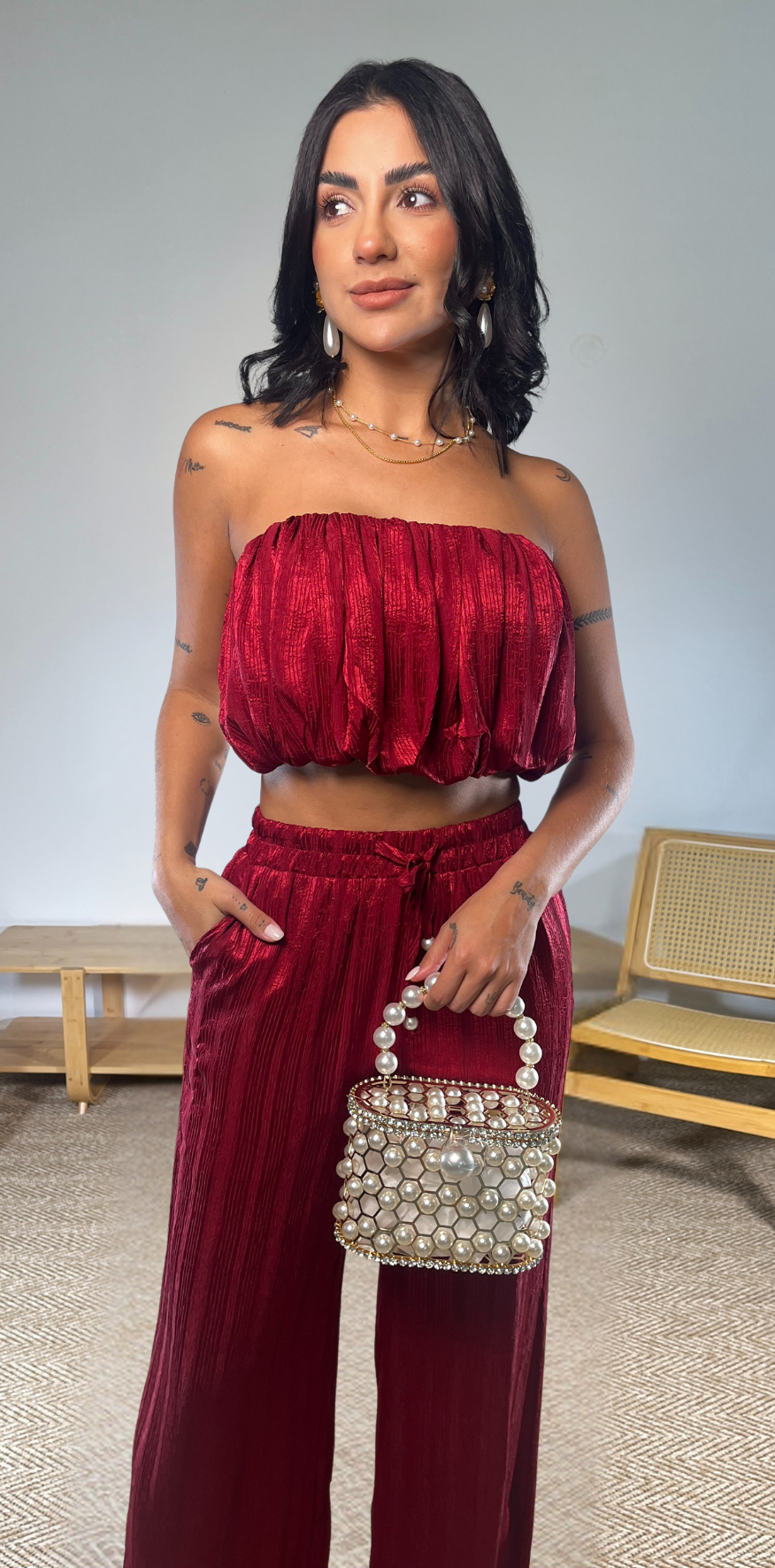Burgundy Crop Blouse.
