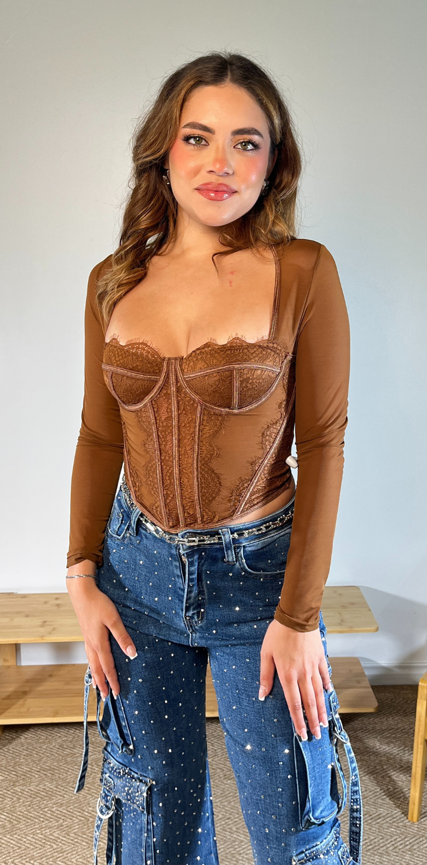 Deep Indigo Rhinestone Patterned Cargo Pants
