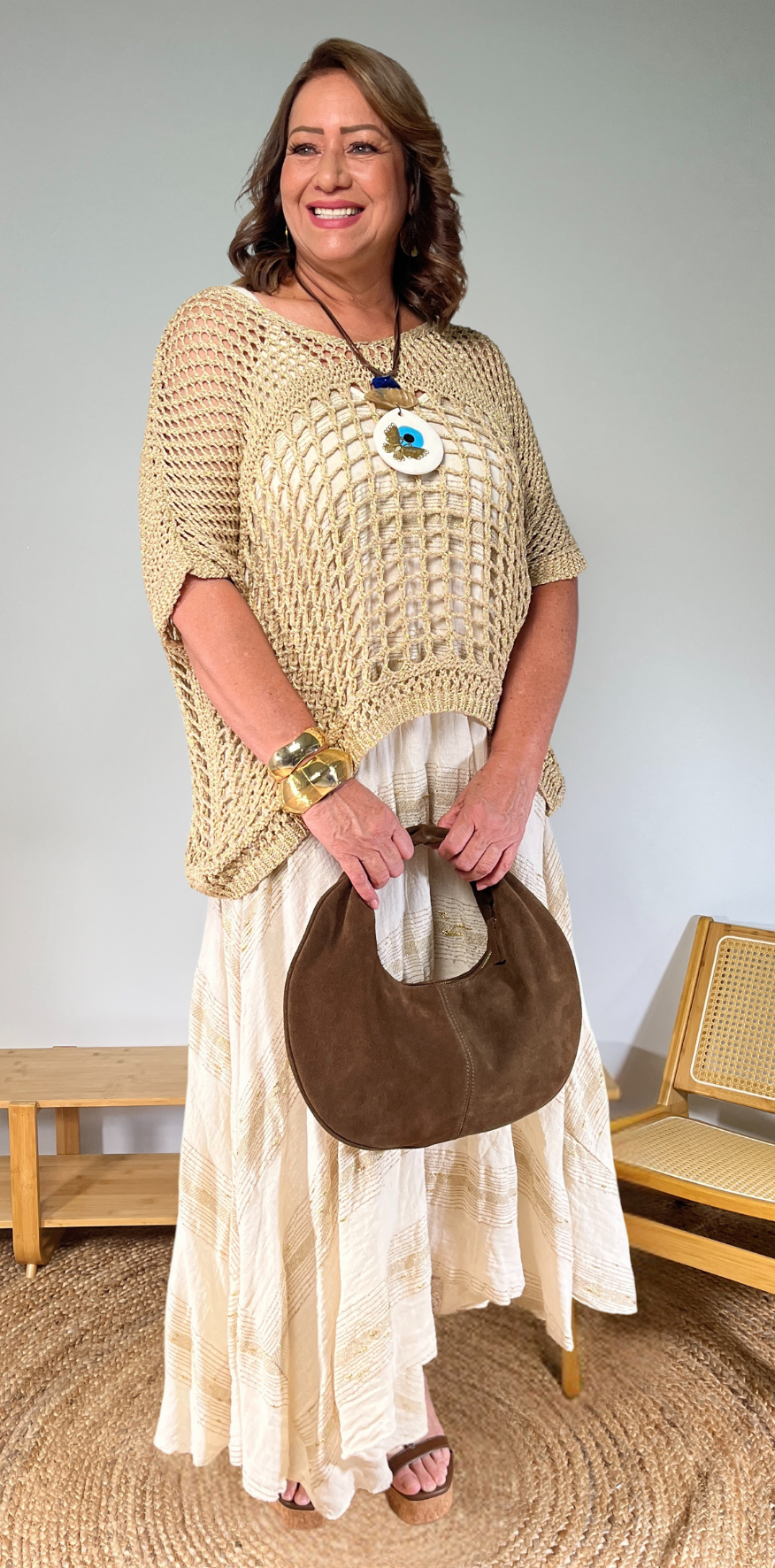 Gold Details Beige Dress.