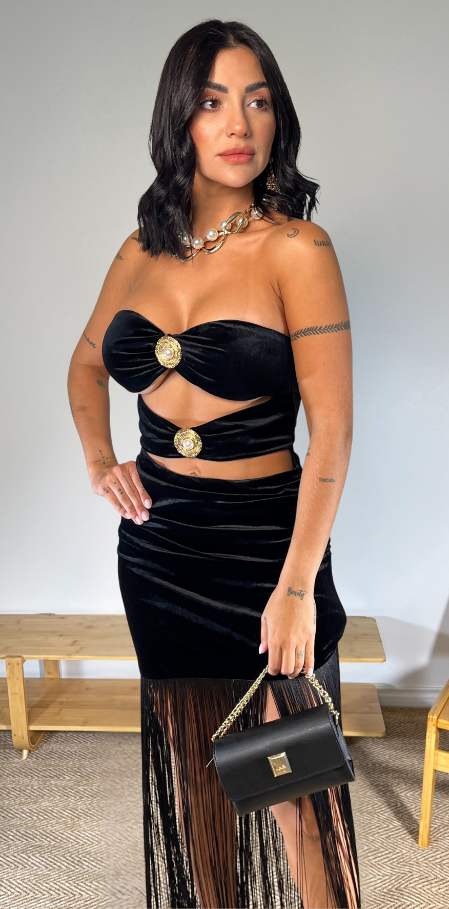 Gold Details Black Dress.