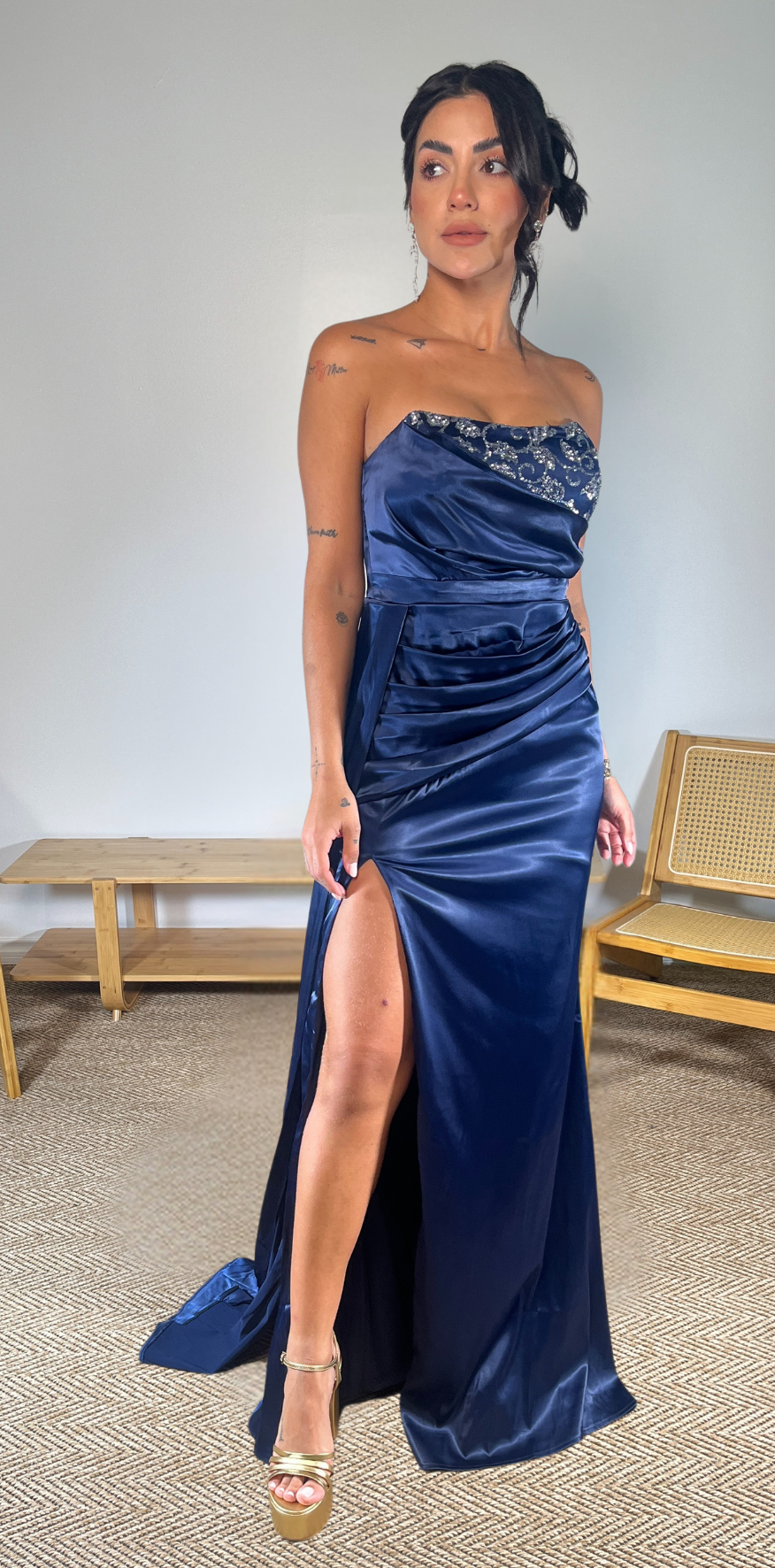 Silver Details Blue Dress.