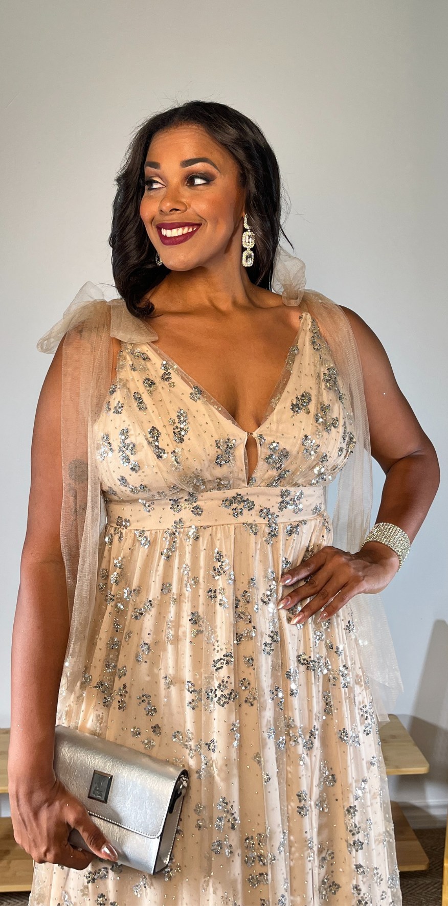 Silver Sequin Beige Dress.