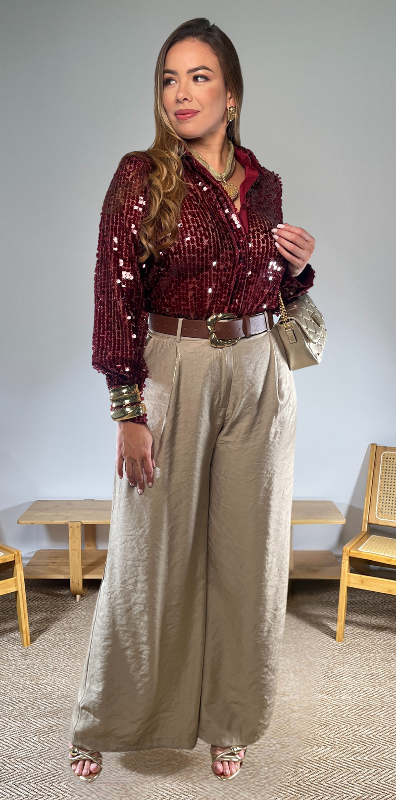 Burgundy Sequin Blouse