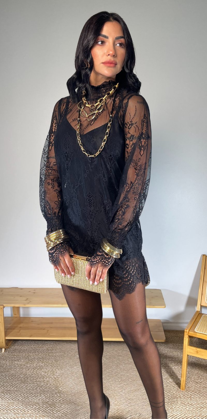 Black Lace Oversized Blouse