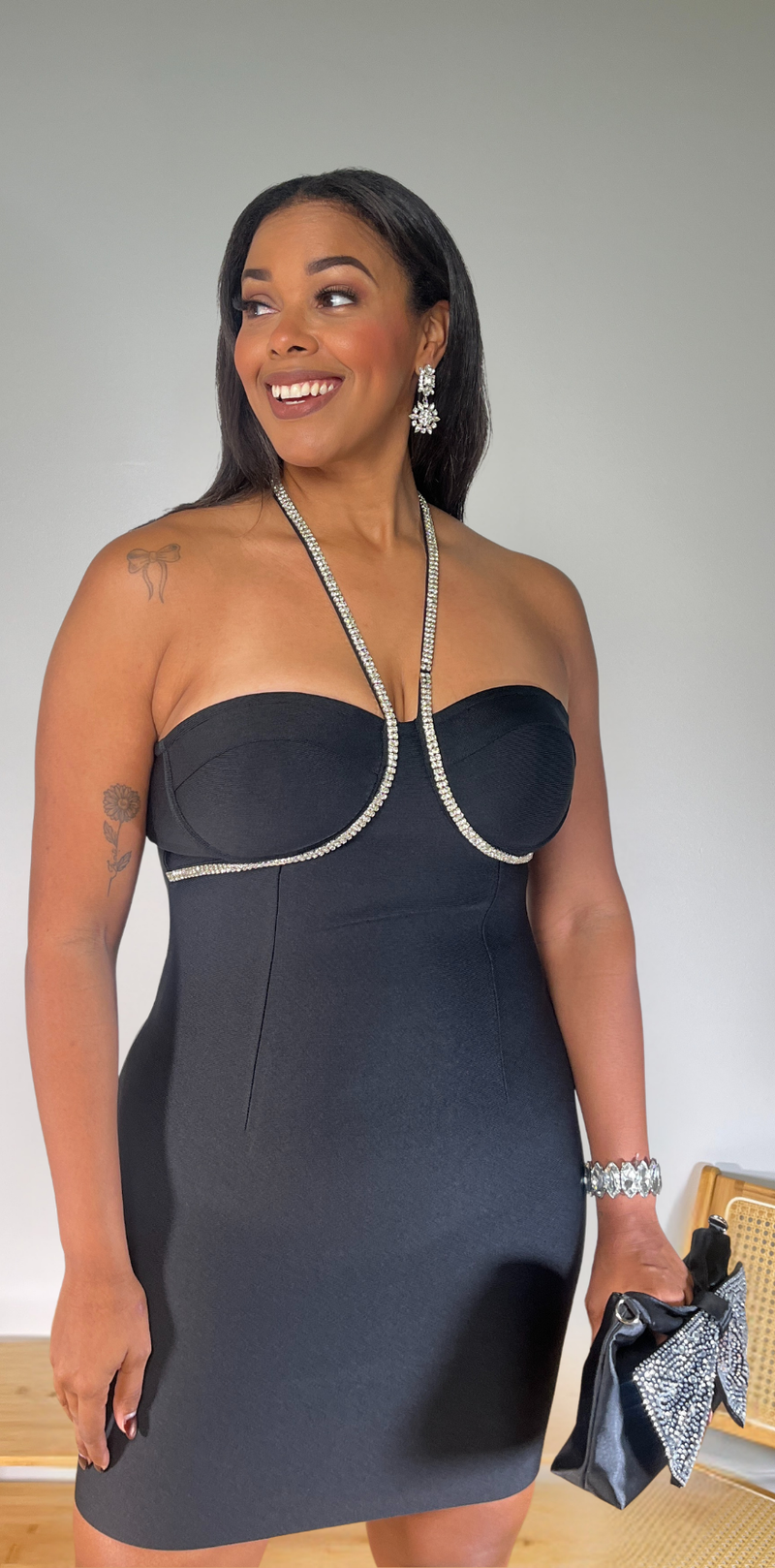 Studded Straps Black Minidress
