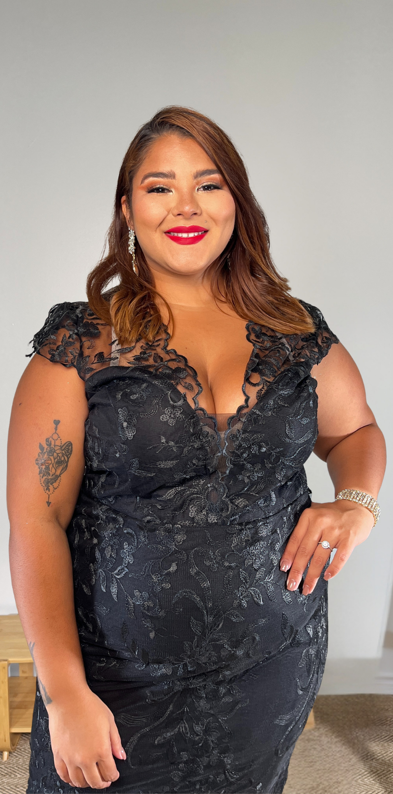 Red Floral Black Dress