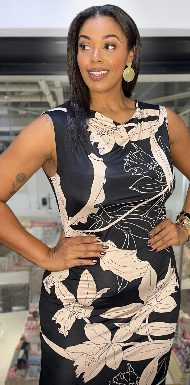 Black and Beige Floral Dress