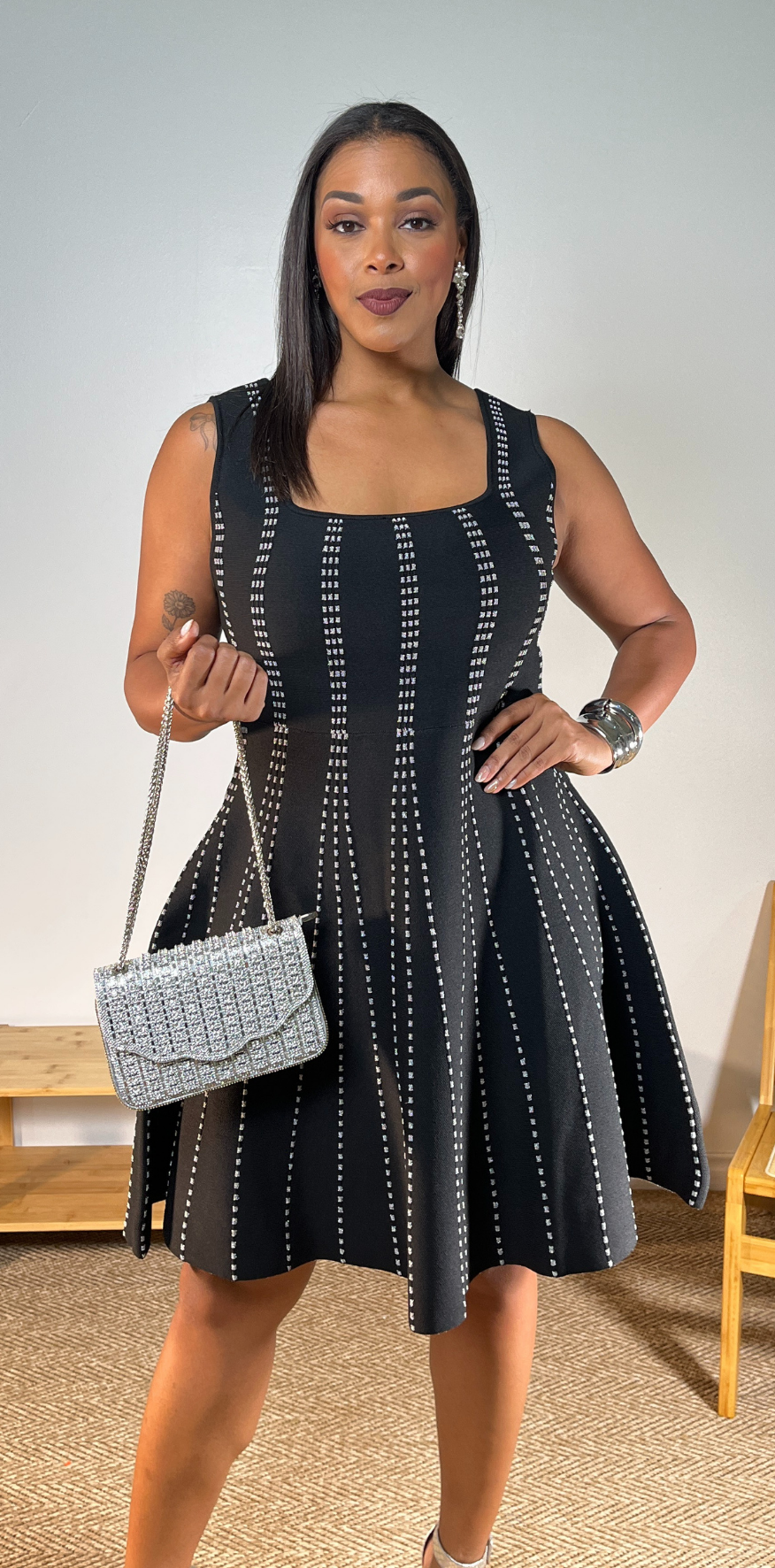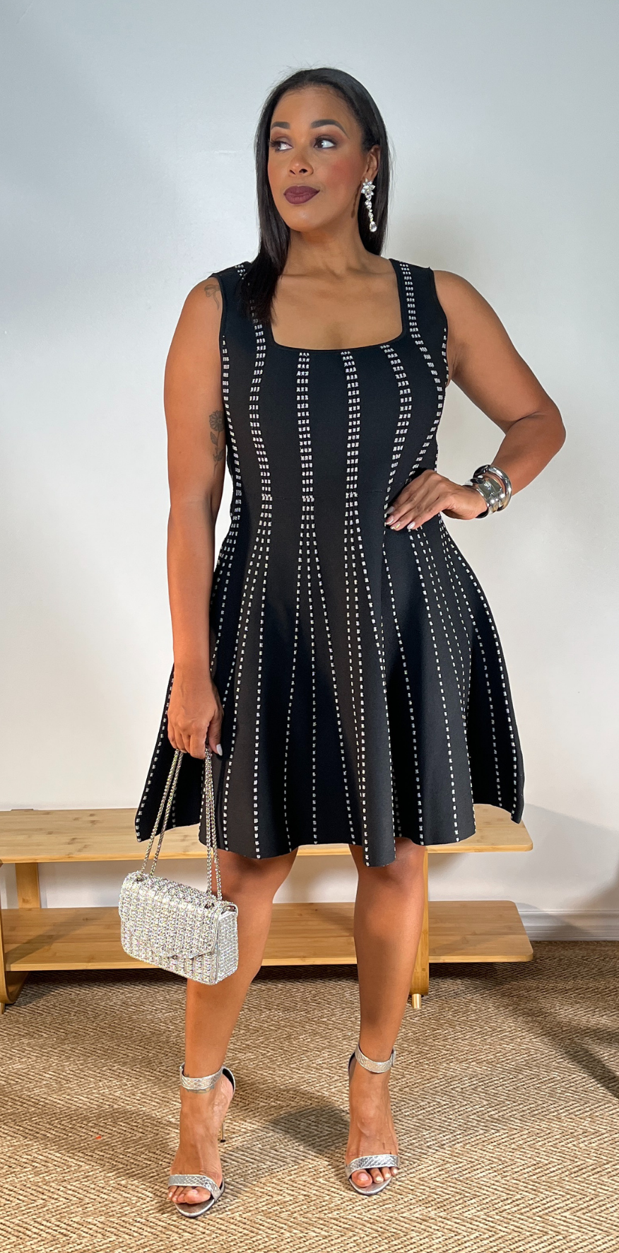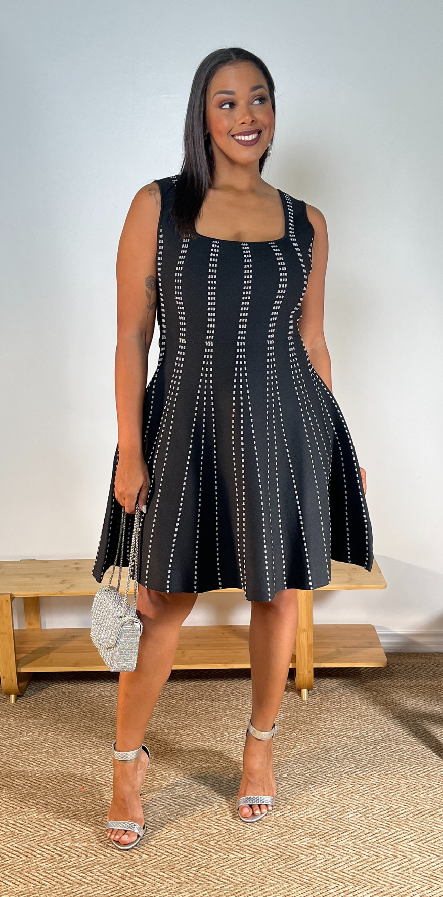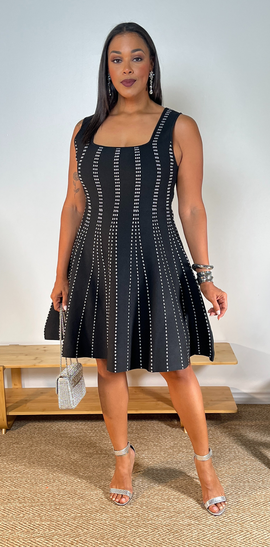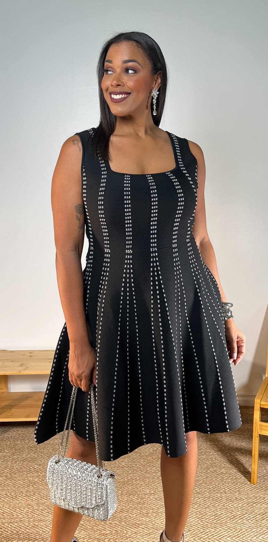 Gray Dotted Details Black Dress.