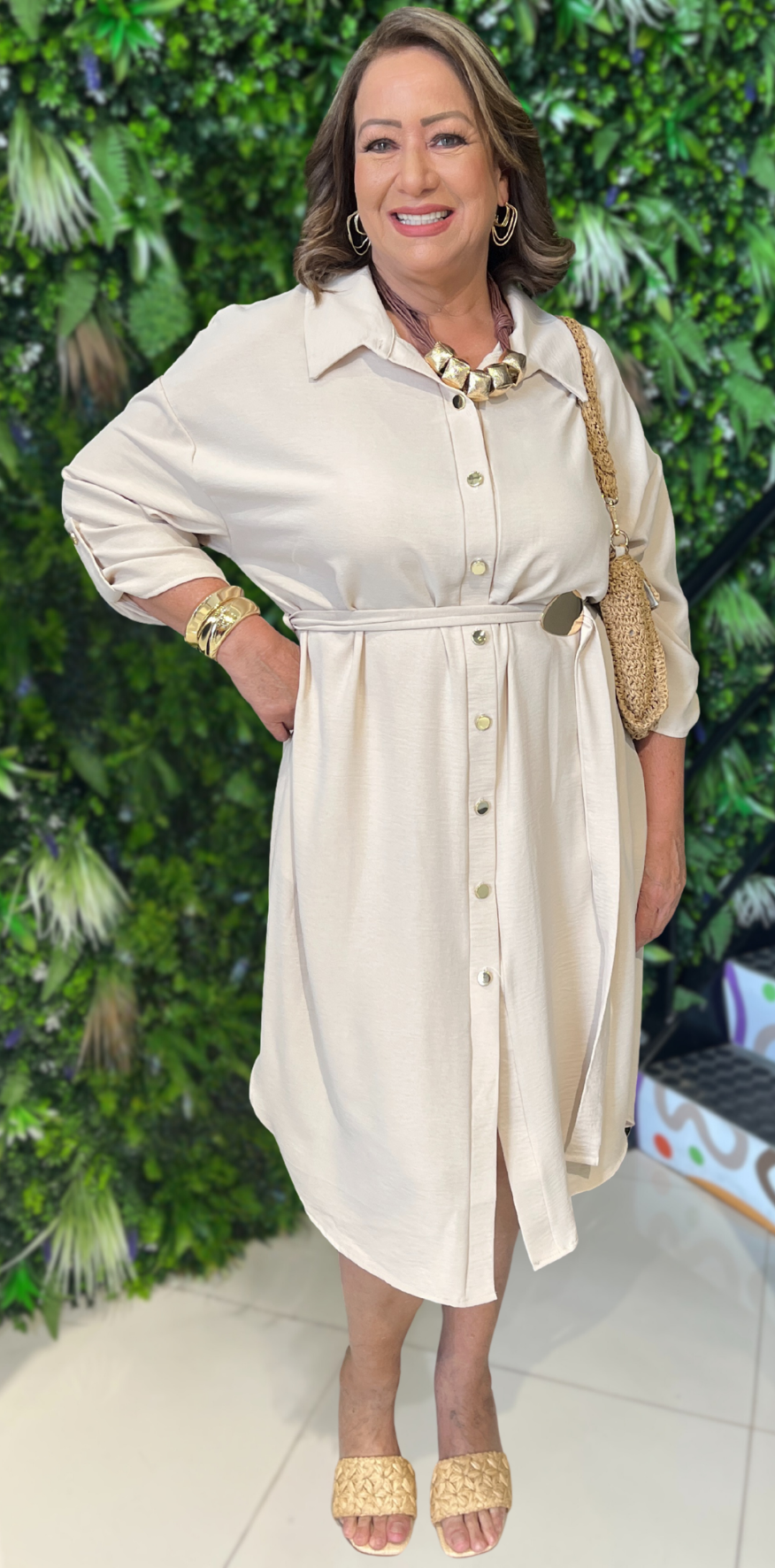 Beige Buttoned Dress.