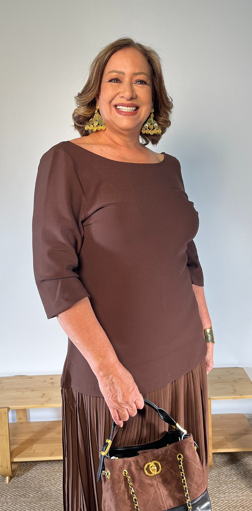 Brown Pleated Dress