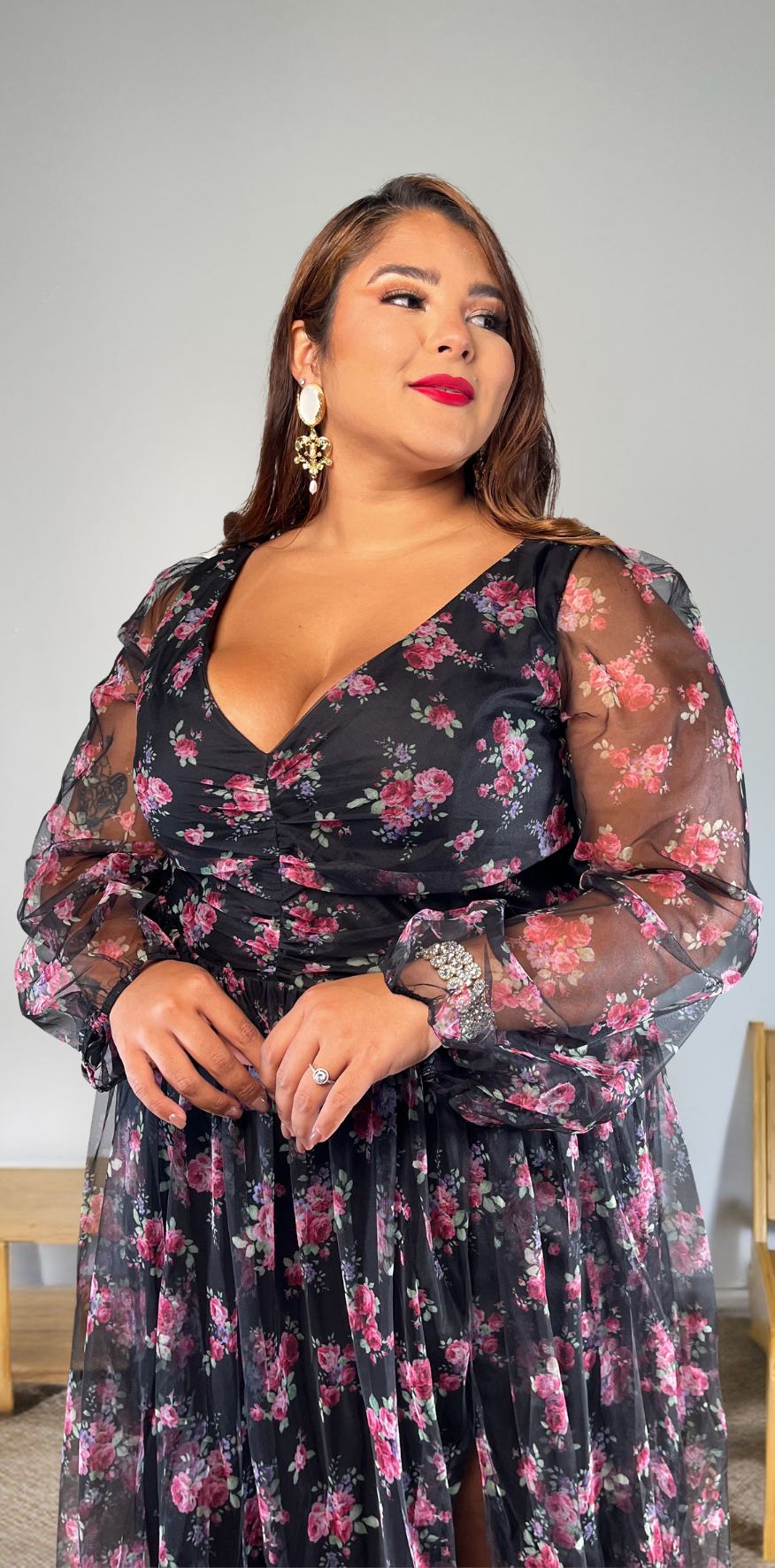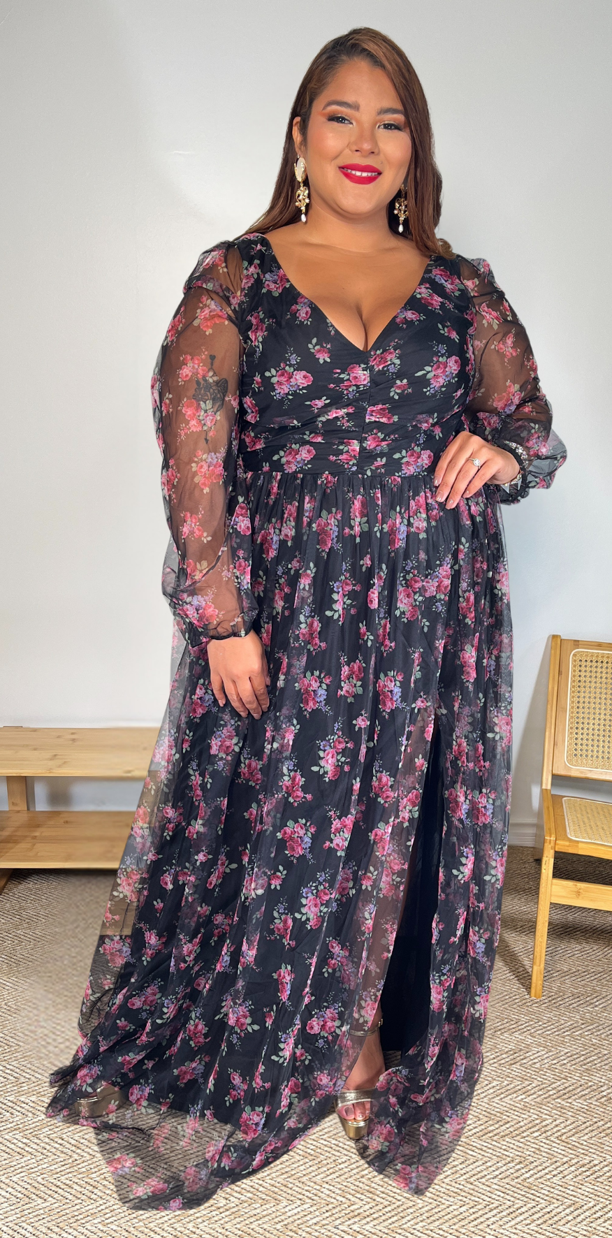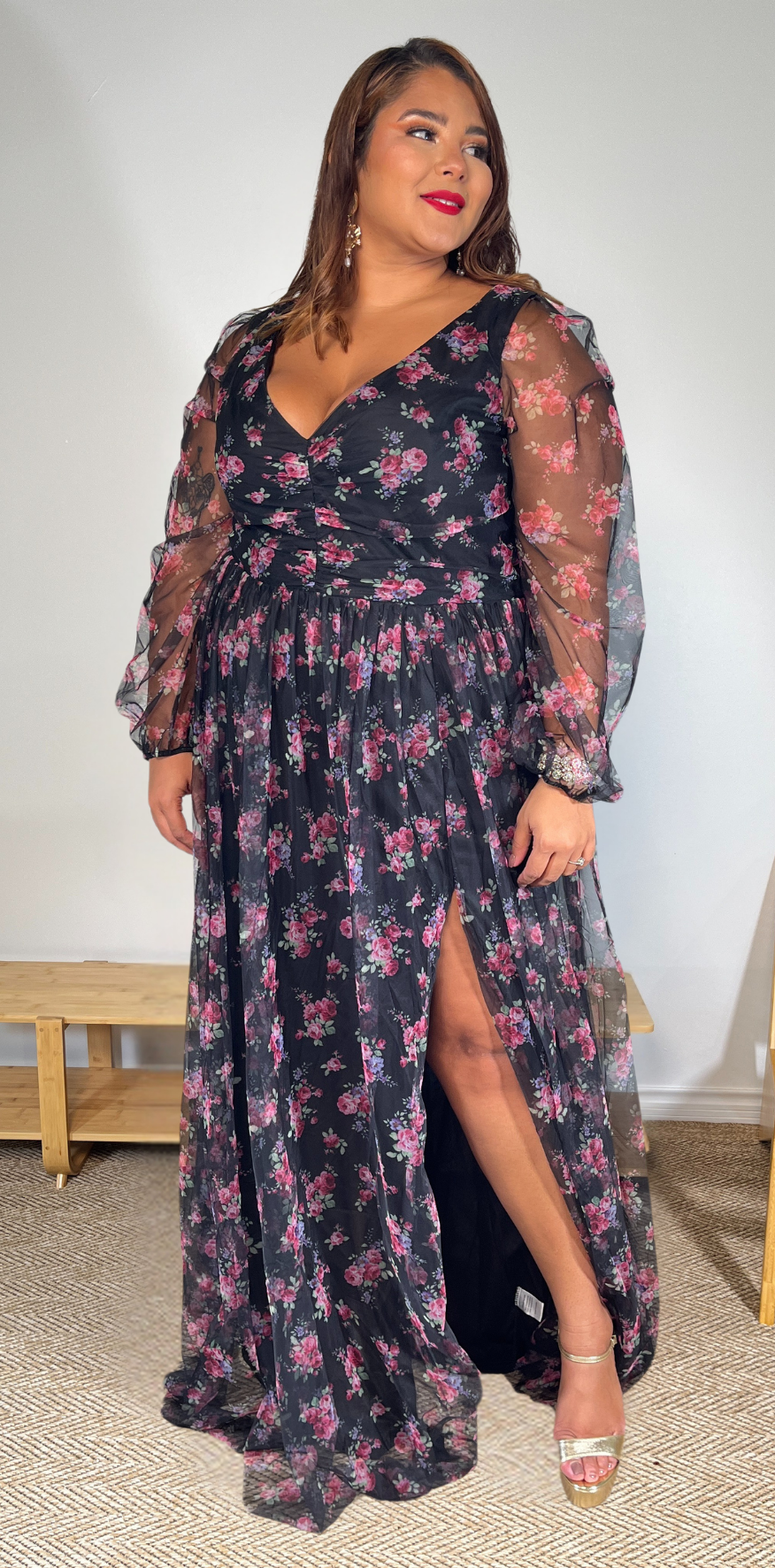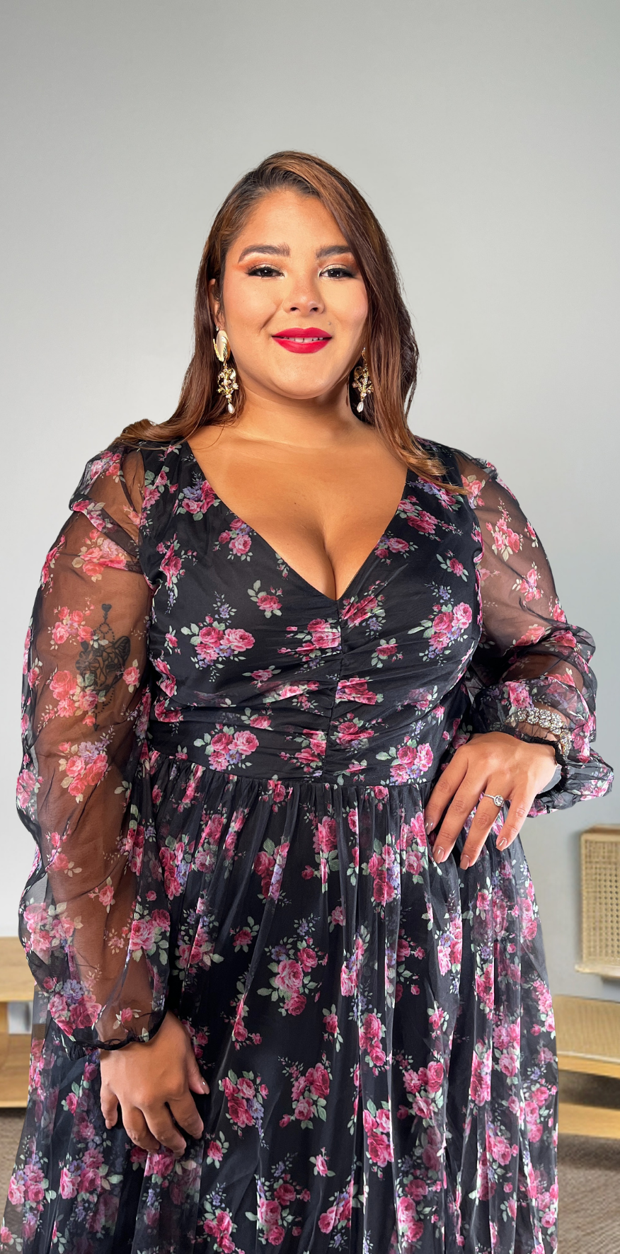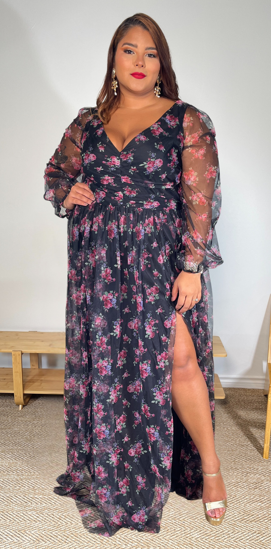 Pink Floral Black Dress.