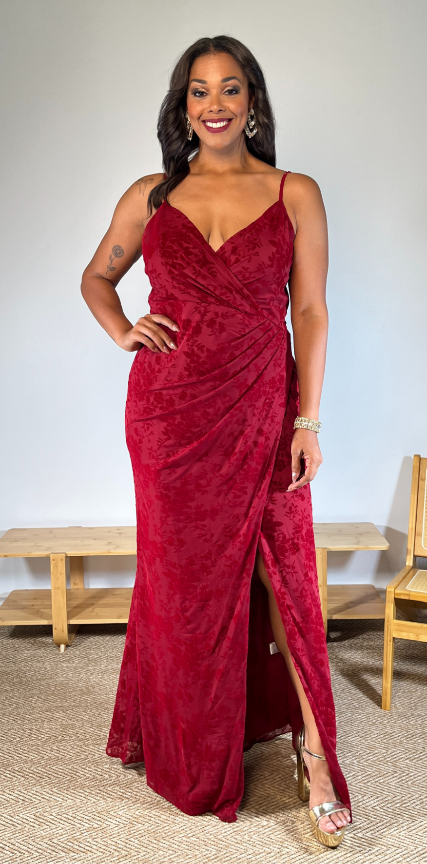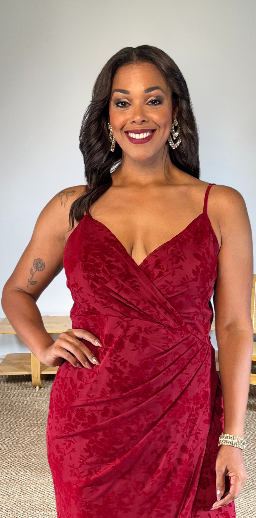 Red Floral Strapped Dress.