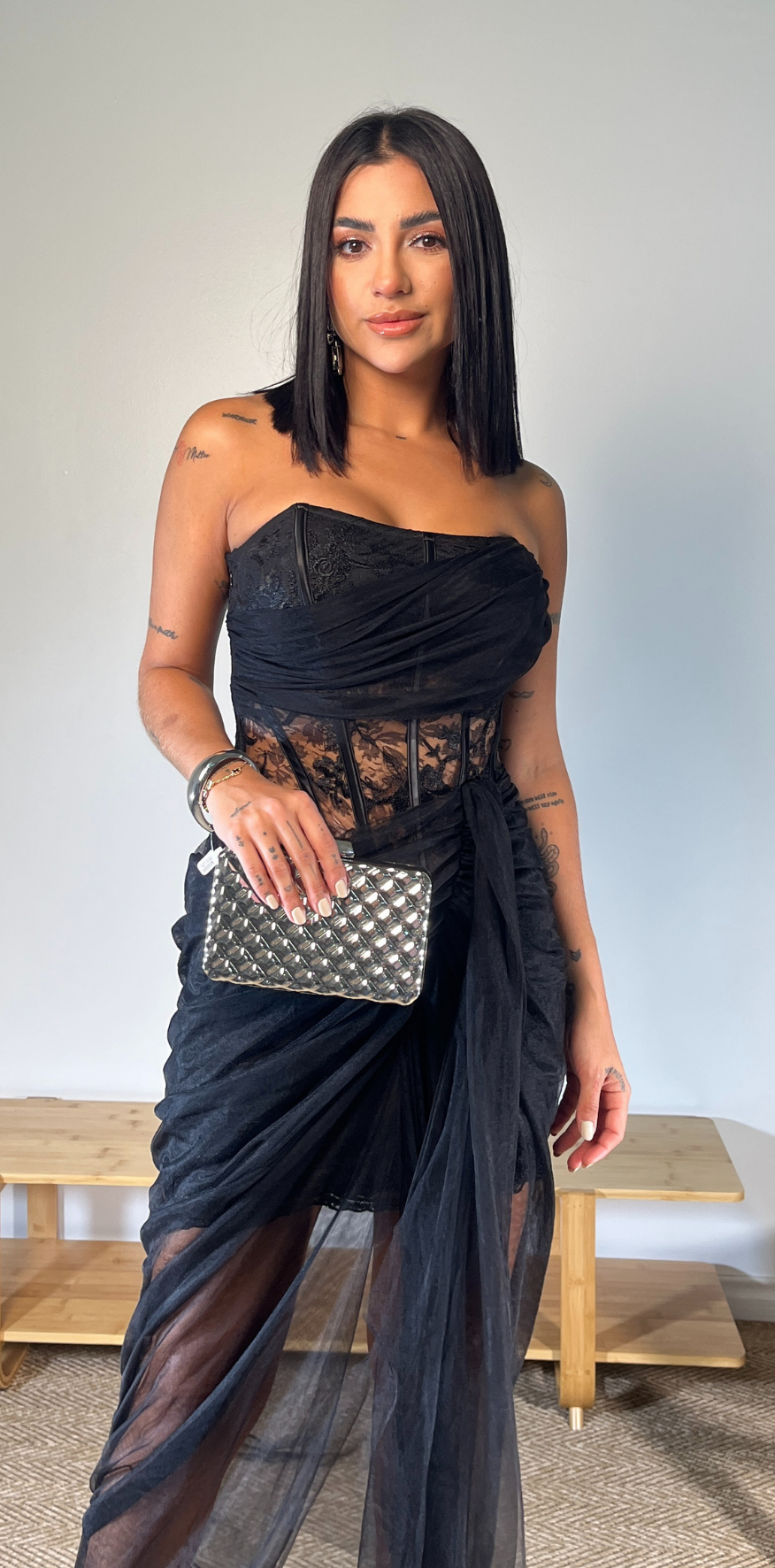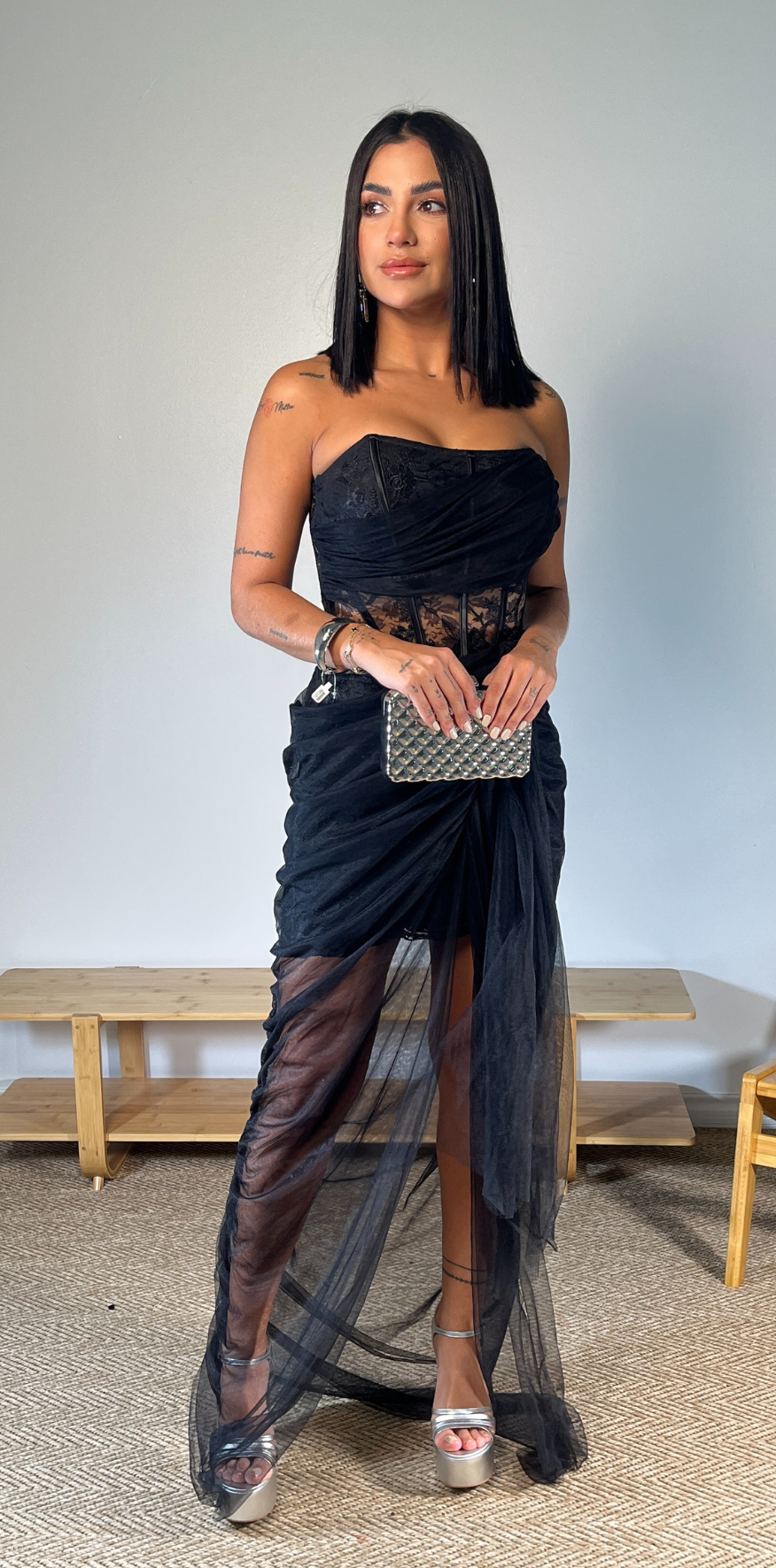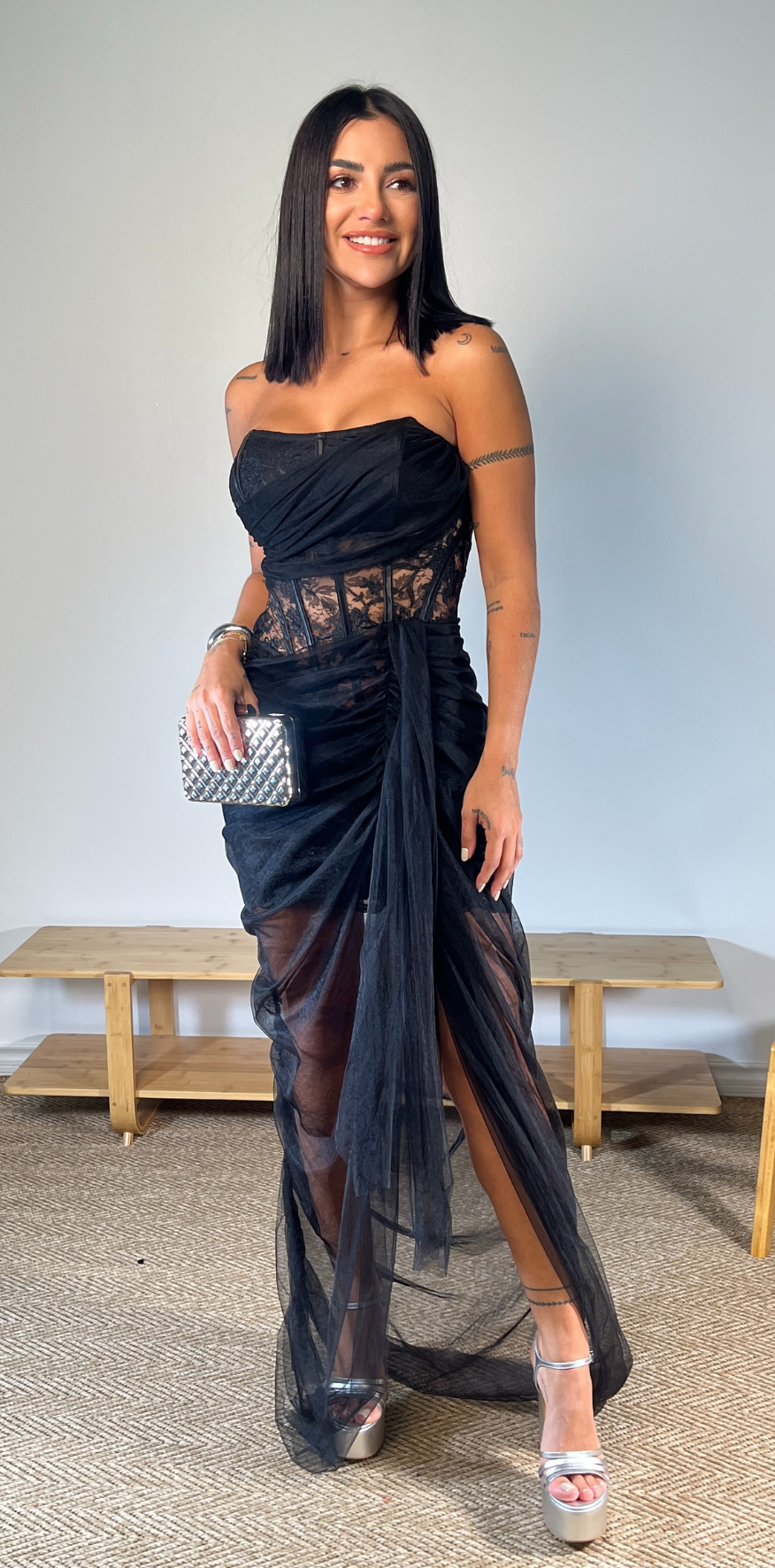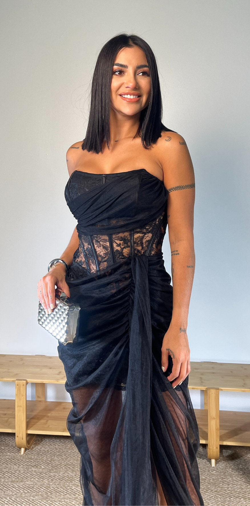 Black Strapless Lace Corset Dress
