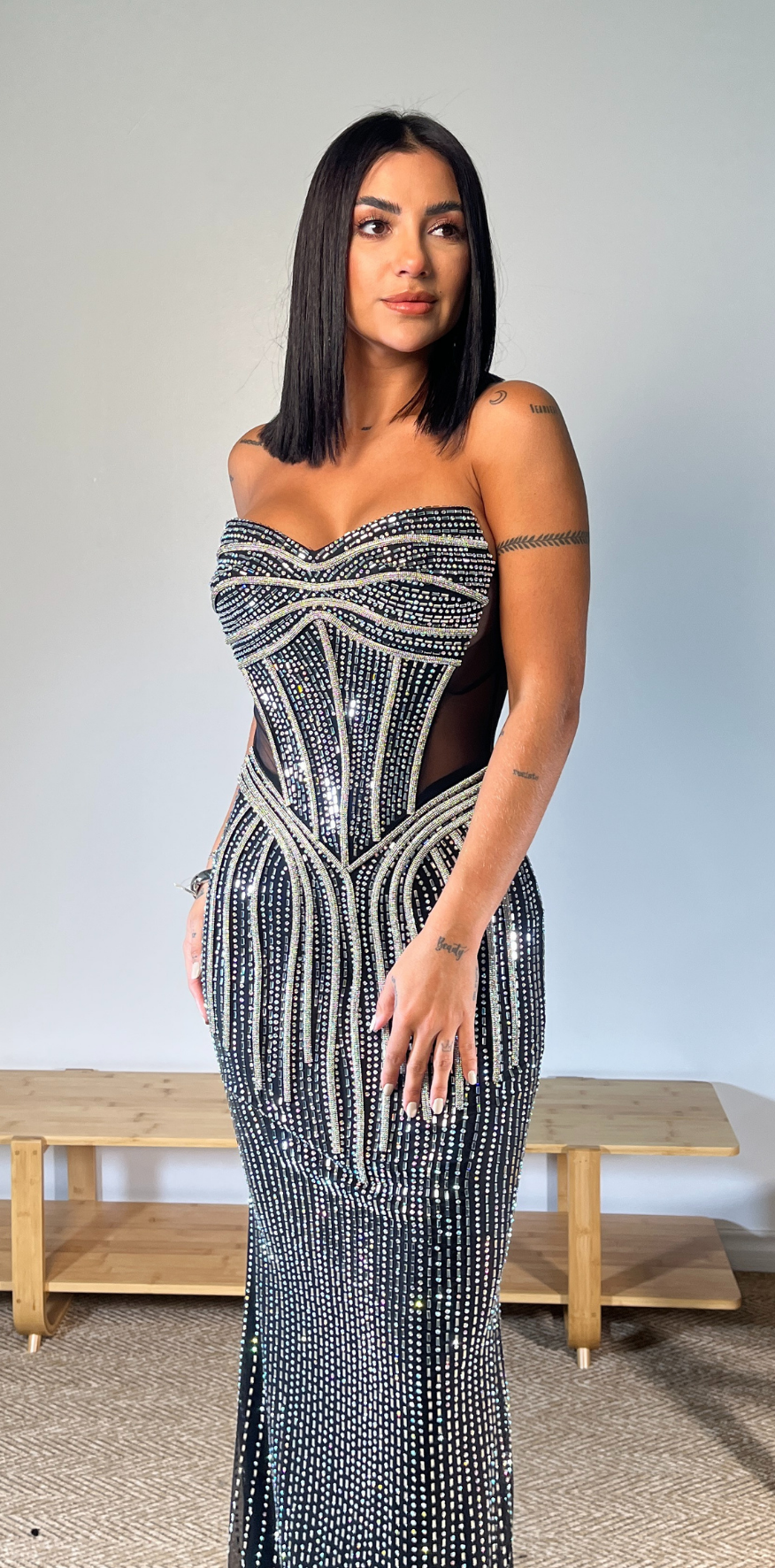 Black strapless studded dress. Price: AWG 395,- / USD 226