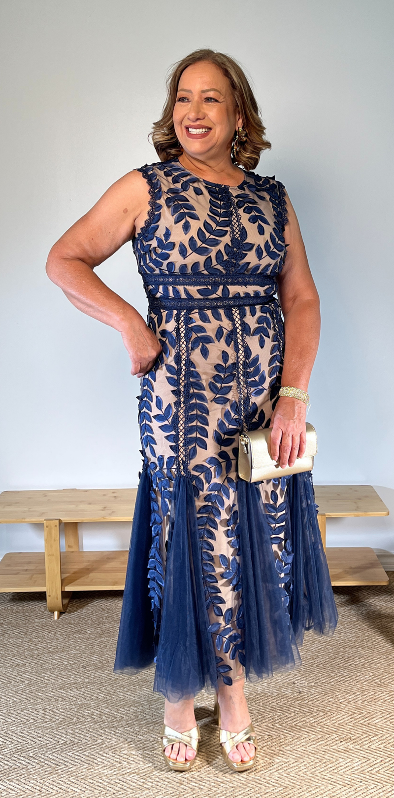 Blue Floral Beige Dress