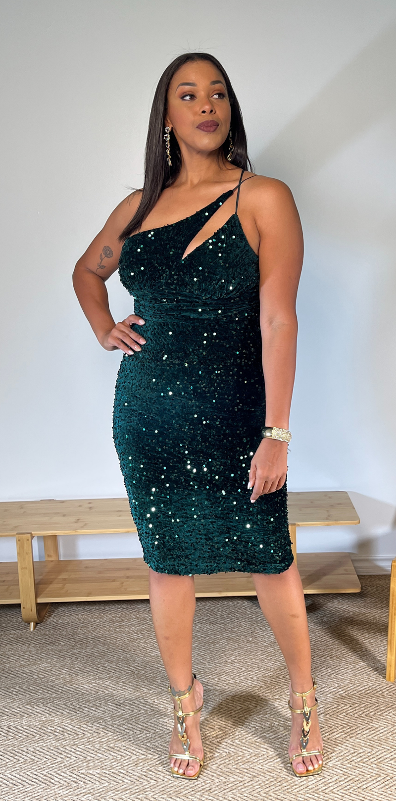 Green Sequin Strapped Dress