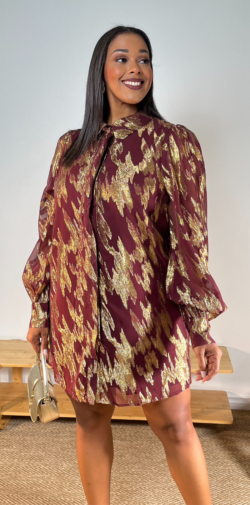 Gold Detail Wine Minidress
