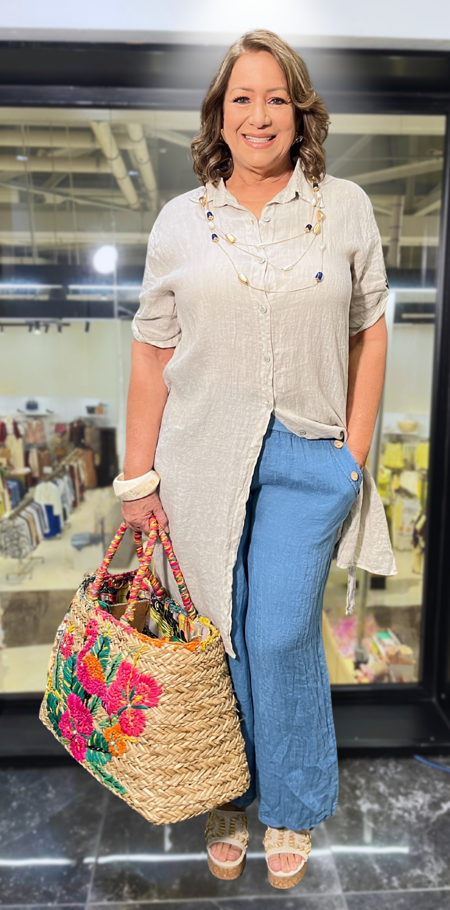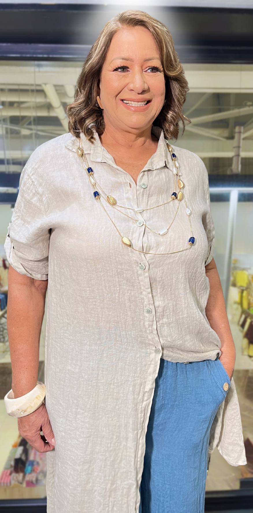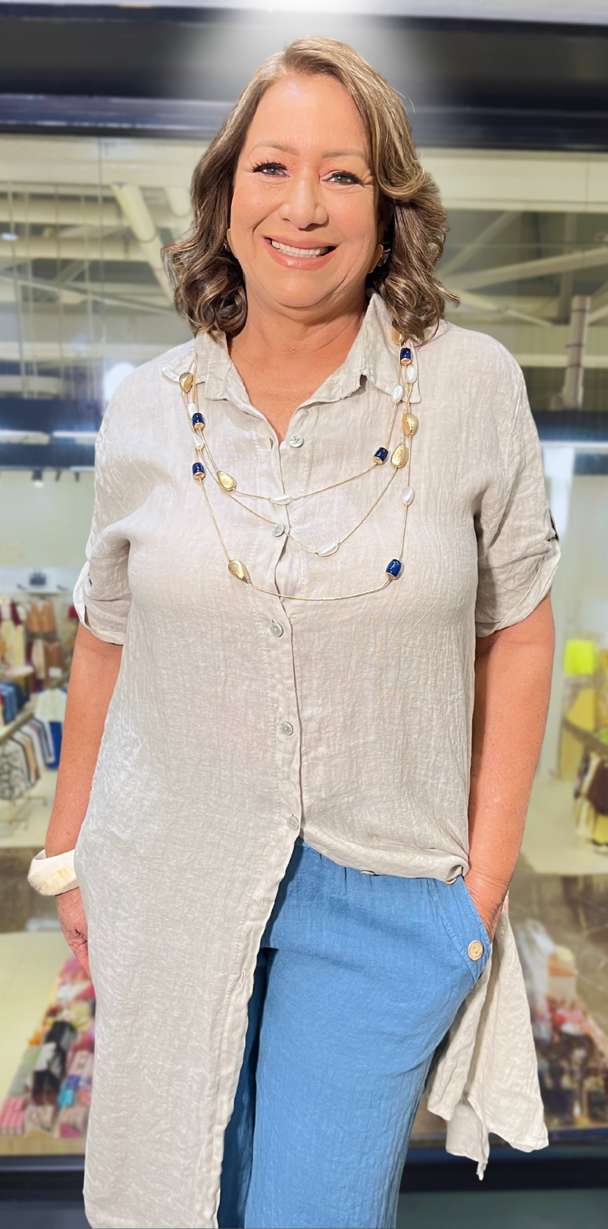 Beige Buttoned Lino Dress.