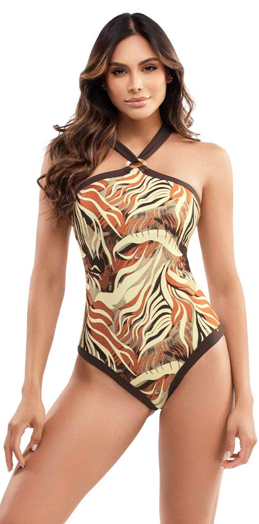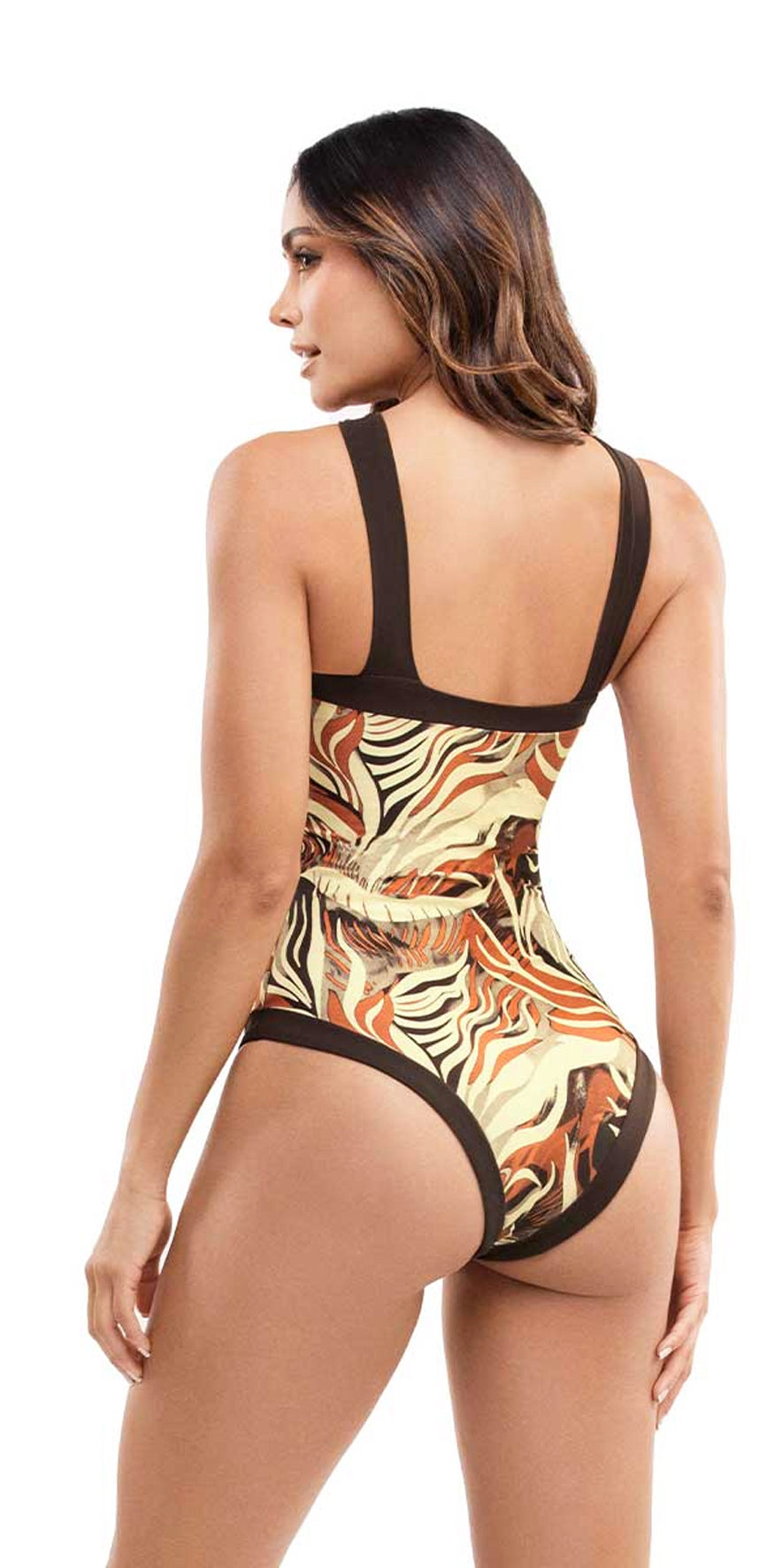 Brown Print Swimsuit.
