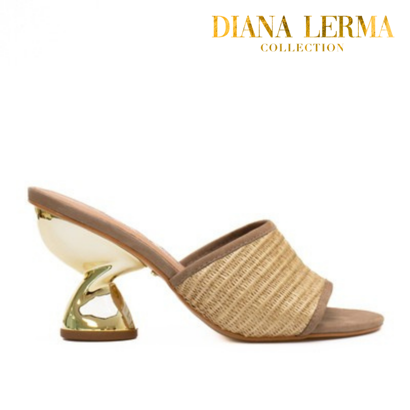 Gold Details Beige Heels