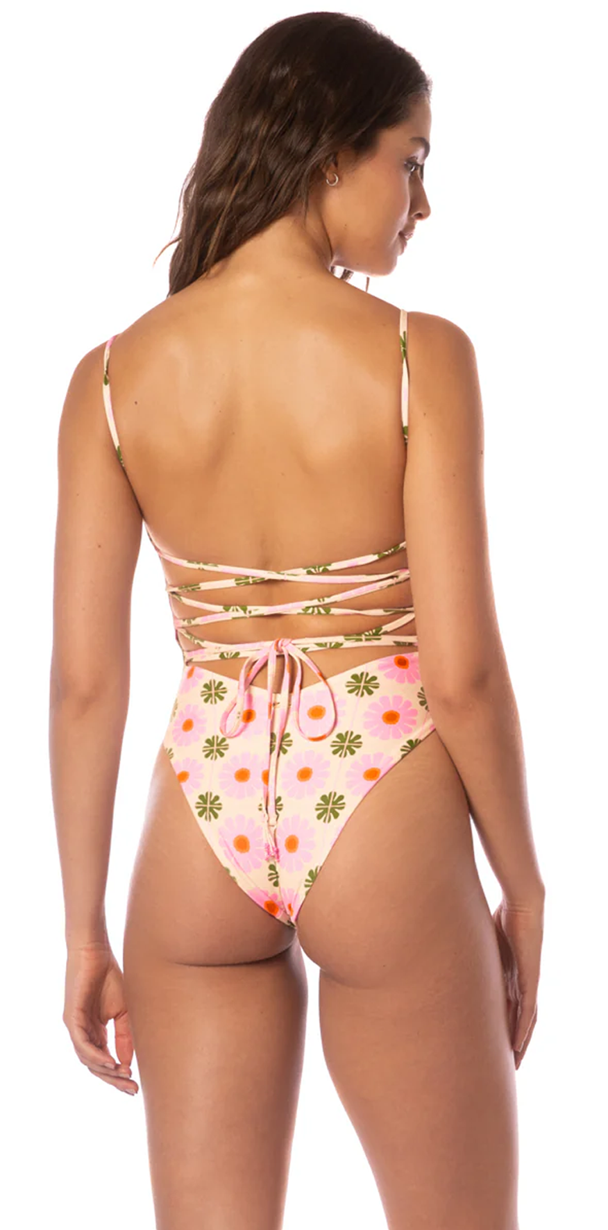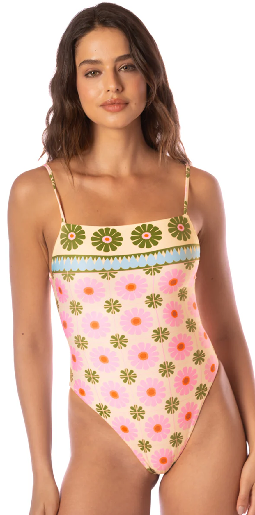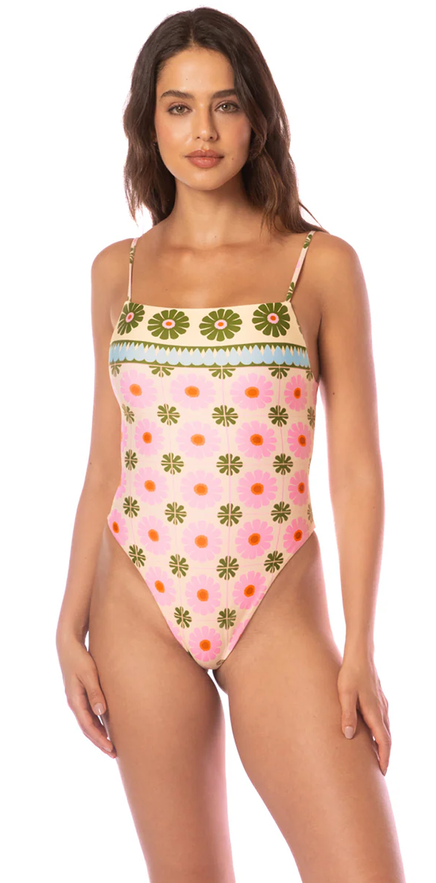 Olive and Pink Floral Swimsuit.